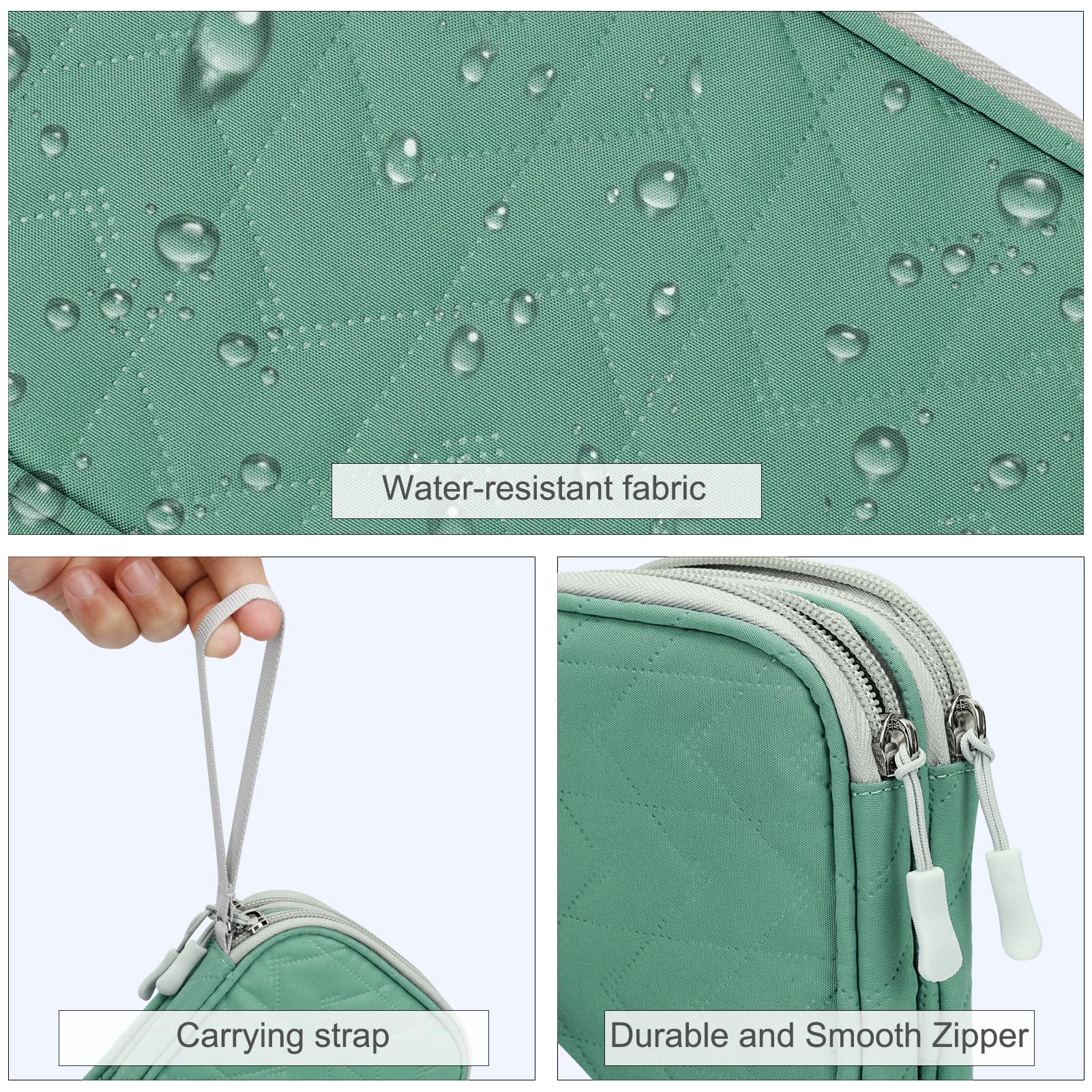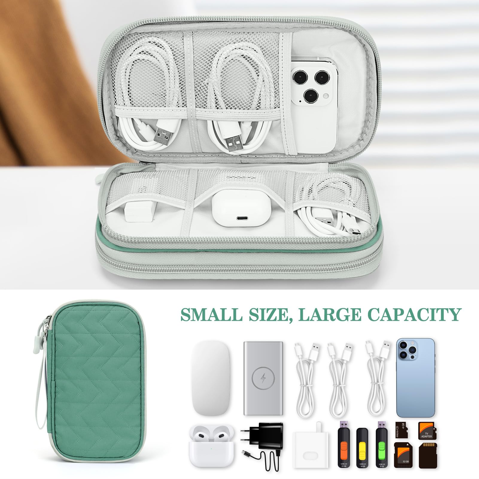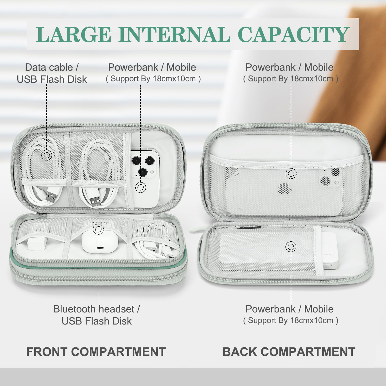 Double Layers Design: The electronics storage bag has 2 layers interior compartment with enough space to take in your cords, cables, USB drive, cellphone, charger, mouse, flash drive, and other accessories.