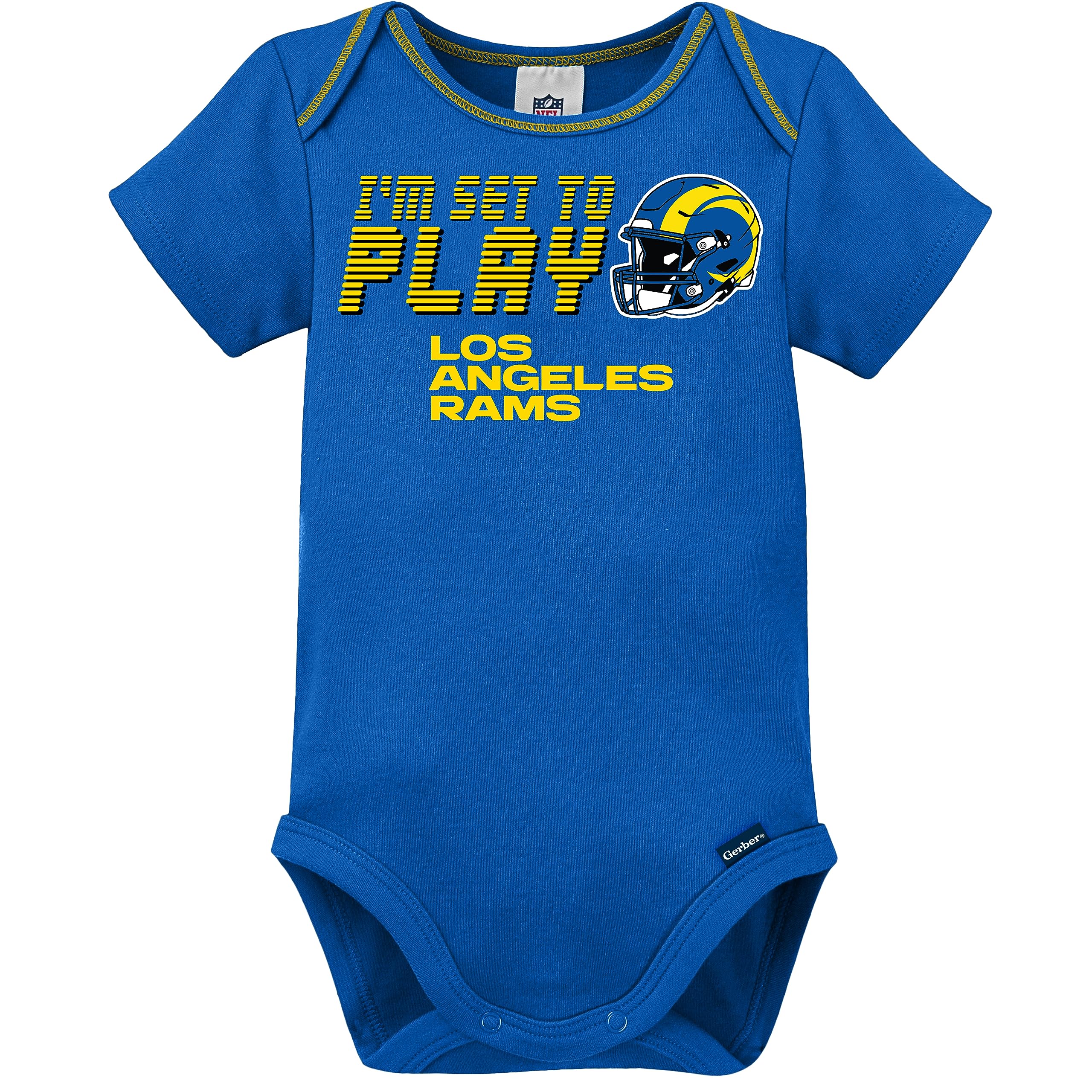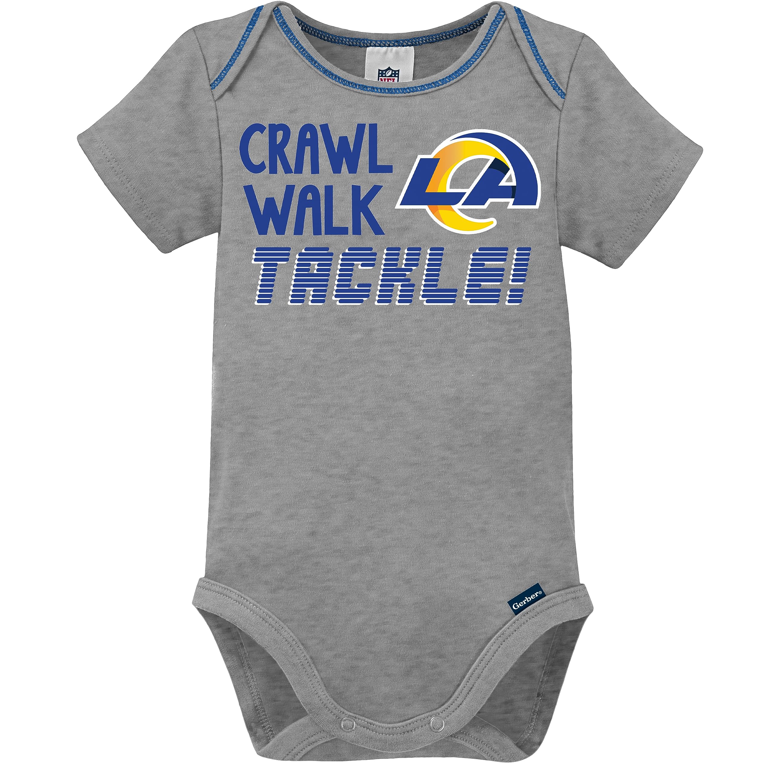 Description Itβs time for the whole family to cheer on the team! These officially licensed NFL bodysuits are the gear your little one needs for game day. Your baby will stay comfy throughout the entire game (and day!) in the cotton/poly interlock of these NFL baby bodysuits. The bodysuits feature expandable lap shoulder necklines to keep changes comfortable and quick. The bodysuits feature a variety of designs and patterns that show off babyβs team pride. The bottom snaps are positioned for convenient diaper changes, so taking breaks from the game donβt last longer than they need to. These baby boysβ bodysuits are a great choice for warm or cool game days, as they may be layered over or worn all on their own. These bodysuits are machine washable for your convenience. Show your team spirit by dressing the whole family for the upcoming season!