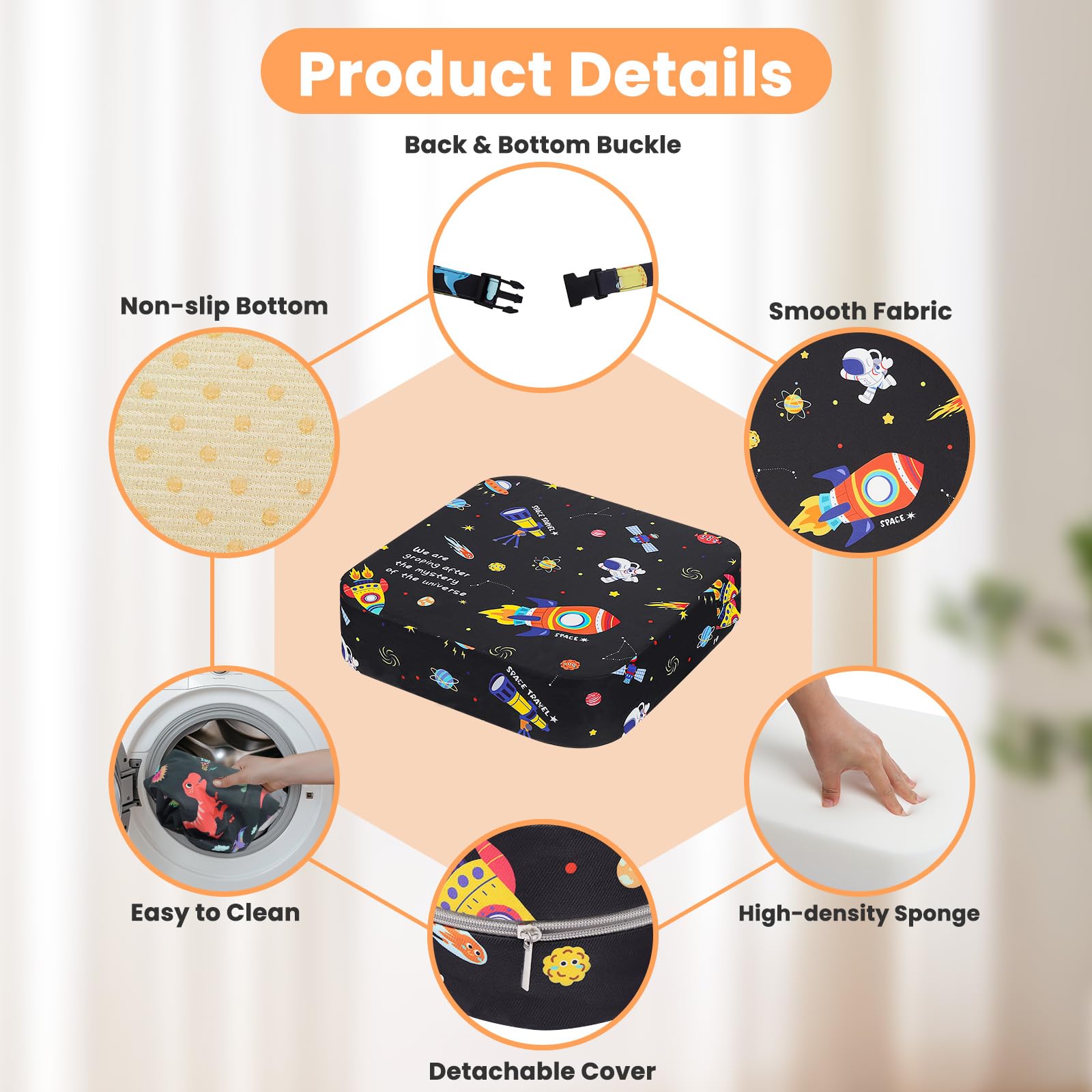 Proper Size: With dimensions of 32x32x8cm /12.6x12.6x3.15 inches, this booster seat easily fits most dining chairs, allowing them to sit at an appropriate height for a cozy experience.