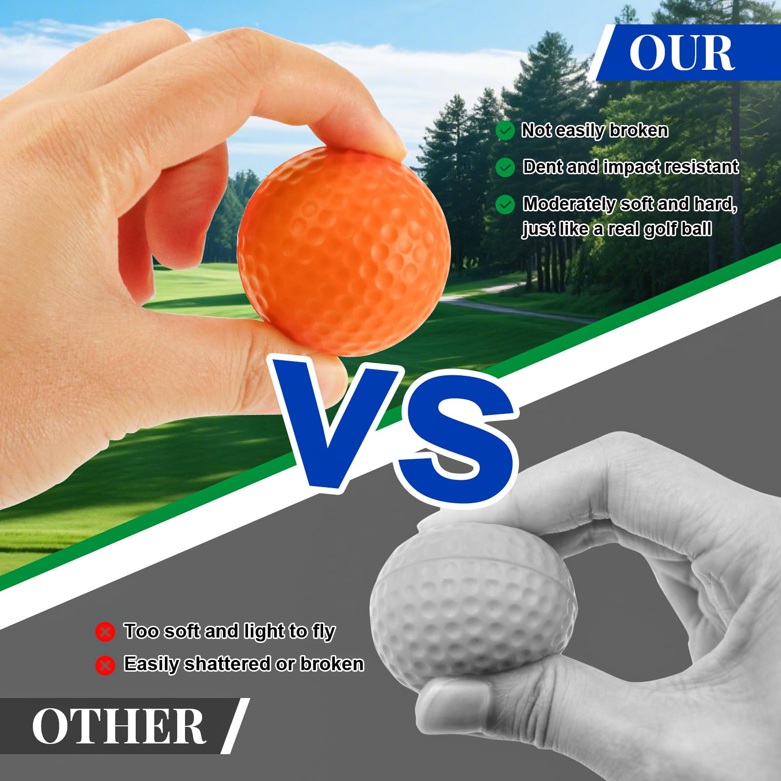 Material and Size: These foam practice balls are made of durable soft resin PU rubber which make these golf balls more soft, light-weight and flexible. Ball diameter: about 1.68 inch/42.6mm.The balls compresses slight upon impact just like a real golf ball, giving it real "pop" off the club face.
