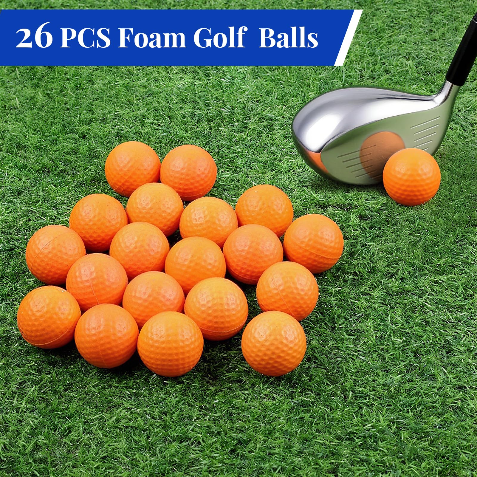Package Including: 26 pcs orange foam golf balls. Come with 1 pvc storage box.