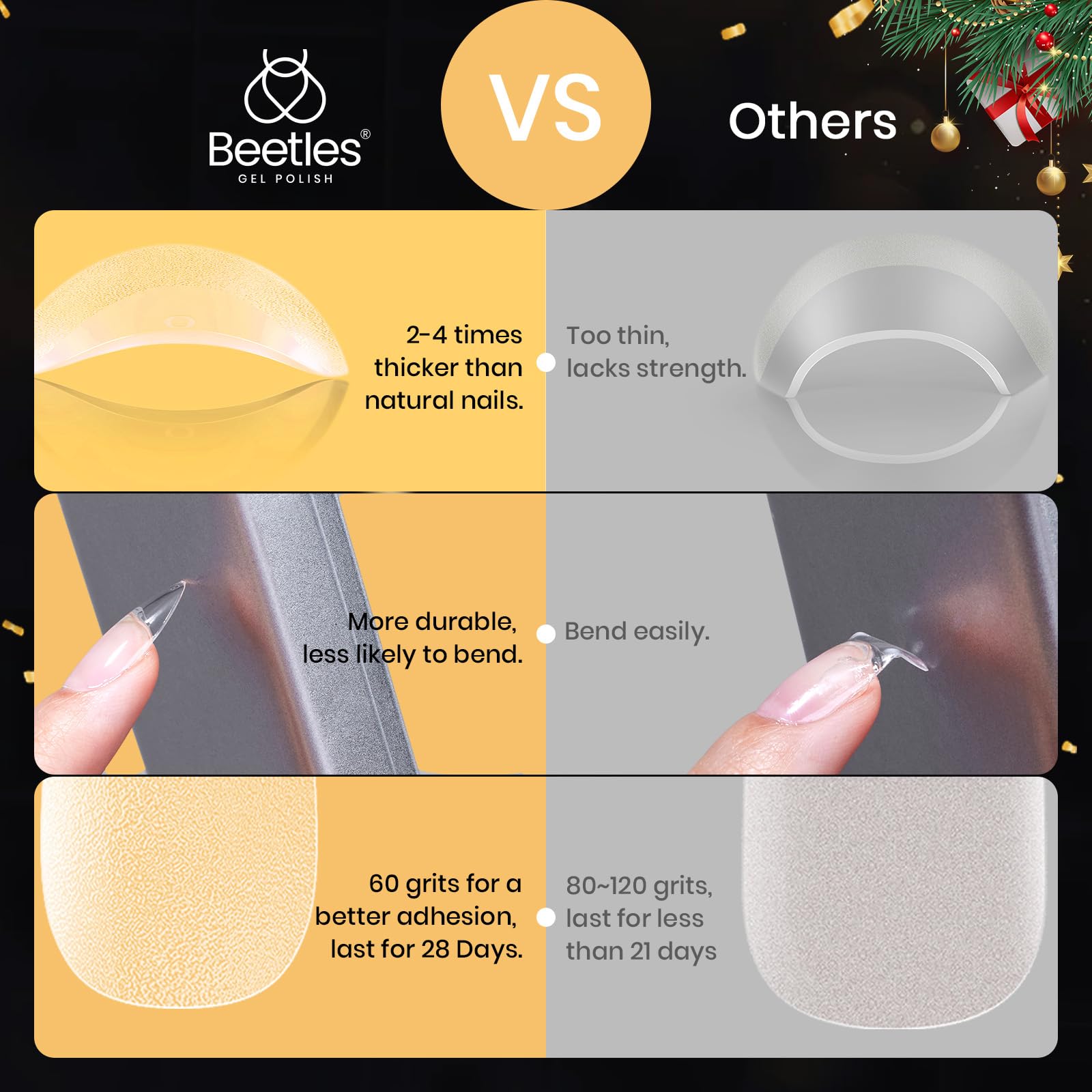 NO Shaping and Filing Needed:Upgraded extra short pre-etching nail tips for a better fit on your natural nails, Beetles Gel Nail Tips are pre-buff, No need to shape and file anymore.Extend your nails in a mere 3 minutes and show them off for more than 28+ days