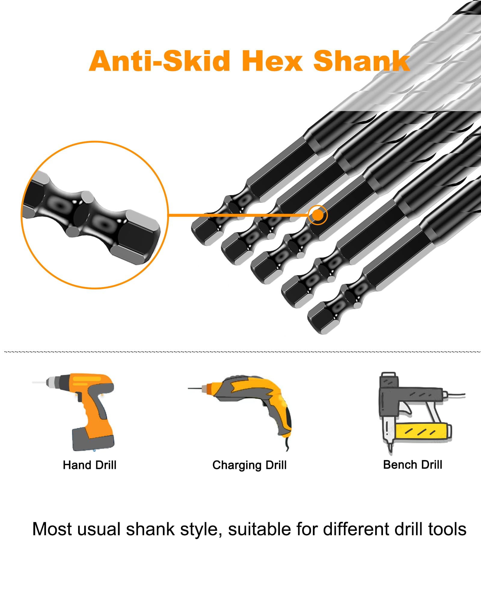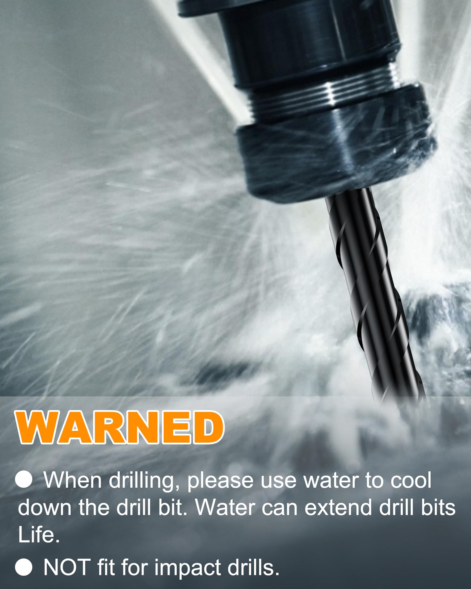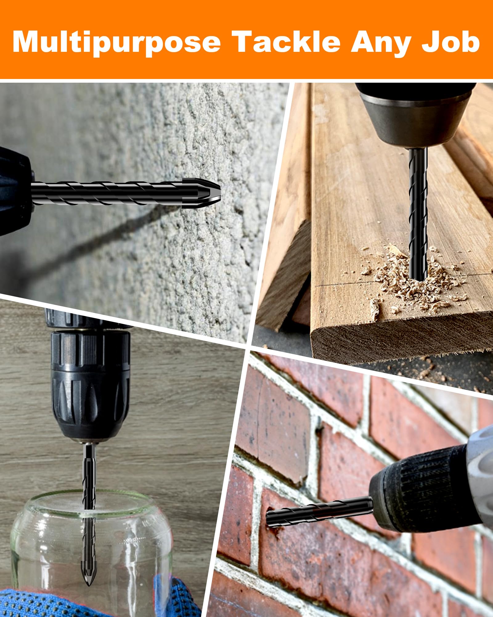 HIGH QUALITY DRILL BIT SET; TITGGI masonry drill bit set, drill bit tip made of high-quality YG6X hard alloy, fully polished and rustproof, clean and sharp without burrs. This cement drill bits can easily penetrate various material (glass, ceramic, cement, wood, brick, hard plastic, etc.)