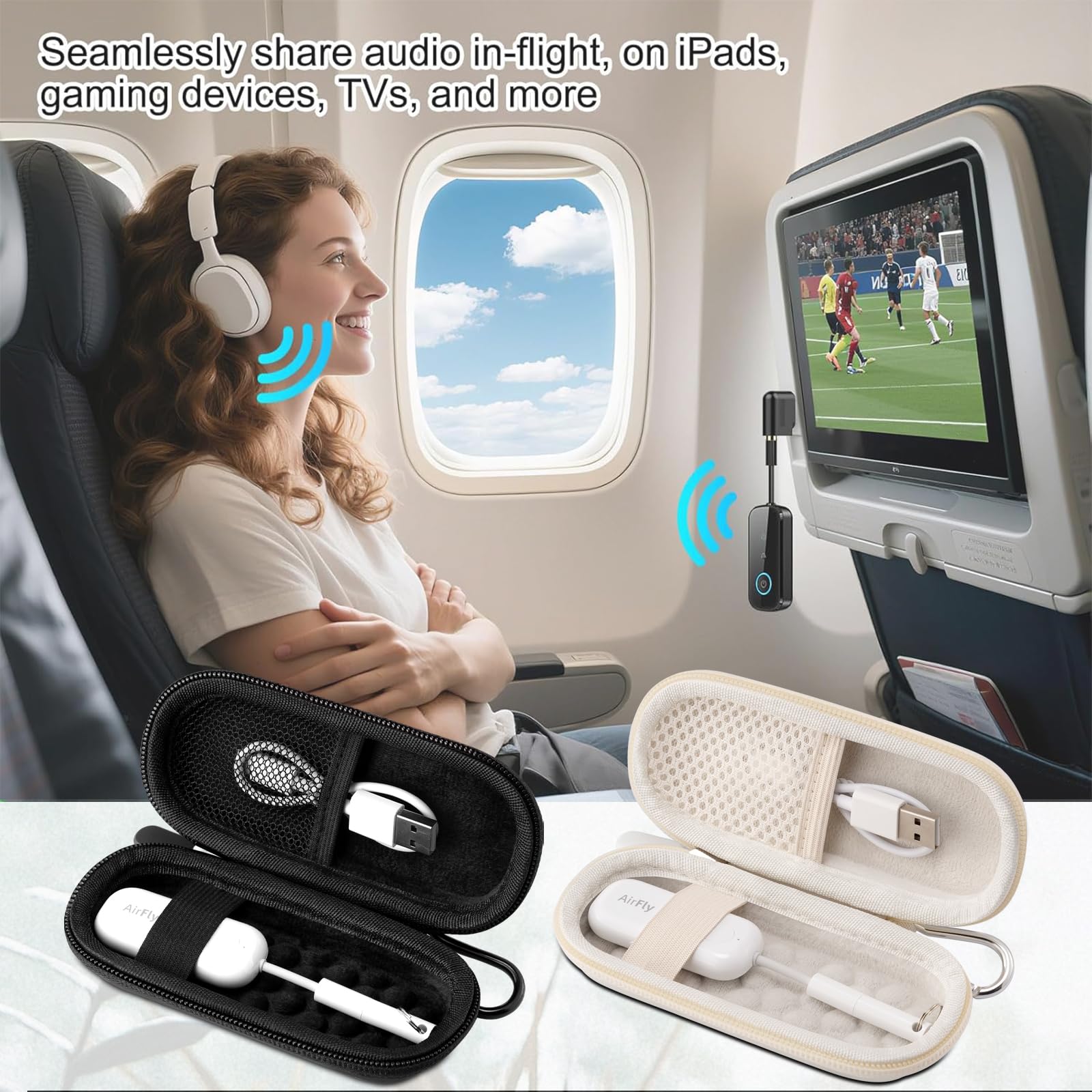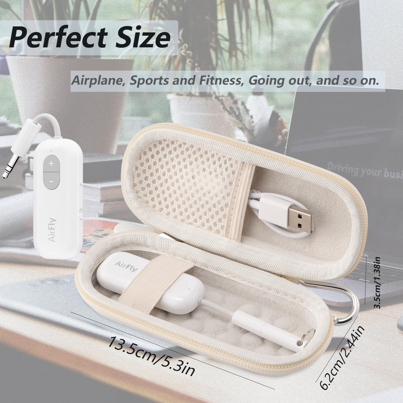 Compact and Portable: The case includes a detachable carabiner clip, allowing you to easily carry your AirFly SE/Pro/Duo Bluetooth wireless transmitter receiver. Perfect for airplane travel and everyday carry, it's a must-have storage bag that combines practicality and style