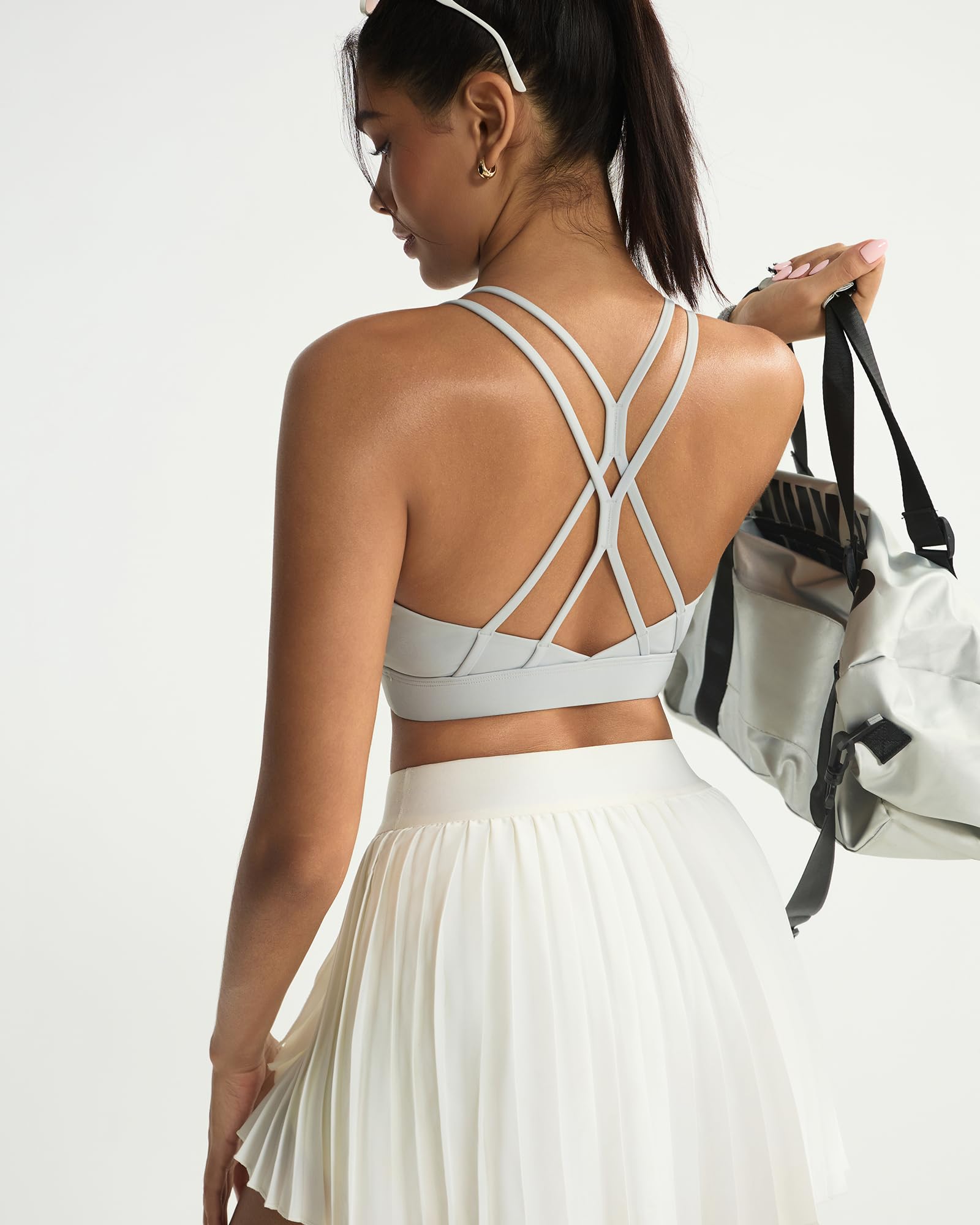 CRISSCROSS-BACK SPORTS BRA:RUNNING GIRL sports bras for women detailing gives the womens sports bras with Crisscross its signature style.But it doesn't just look good,it's hard working.And the running sports bra for women wrapped in durably soft performance stretch fabric keep you comfy and supported.The cotton-like meterial,soft and comfortable to wear.High support sports bras for women let you twist with ease,running bras for women high impact design offers a extra back support.