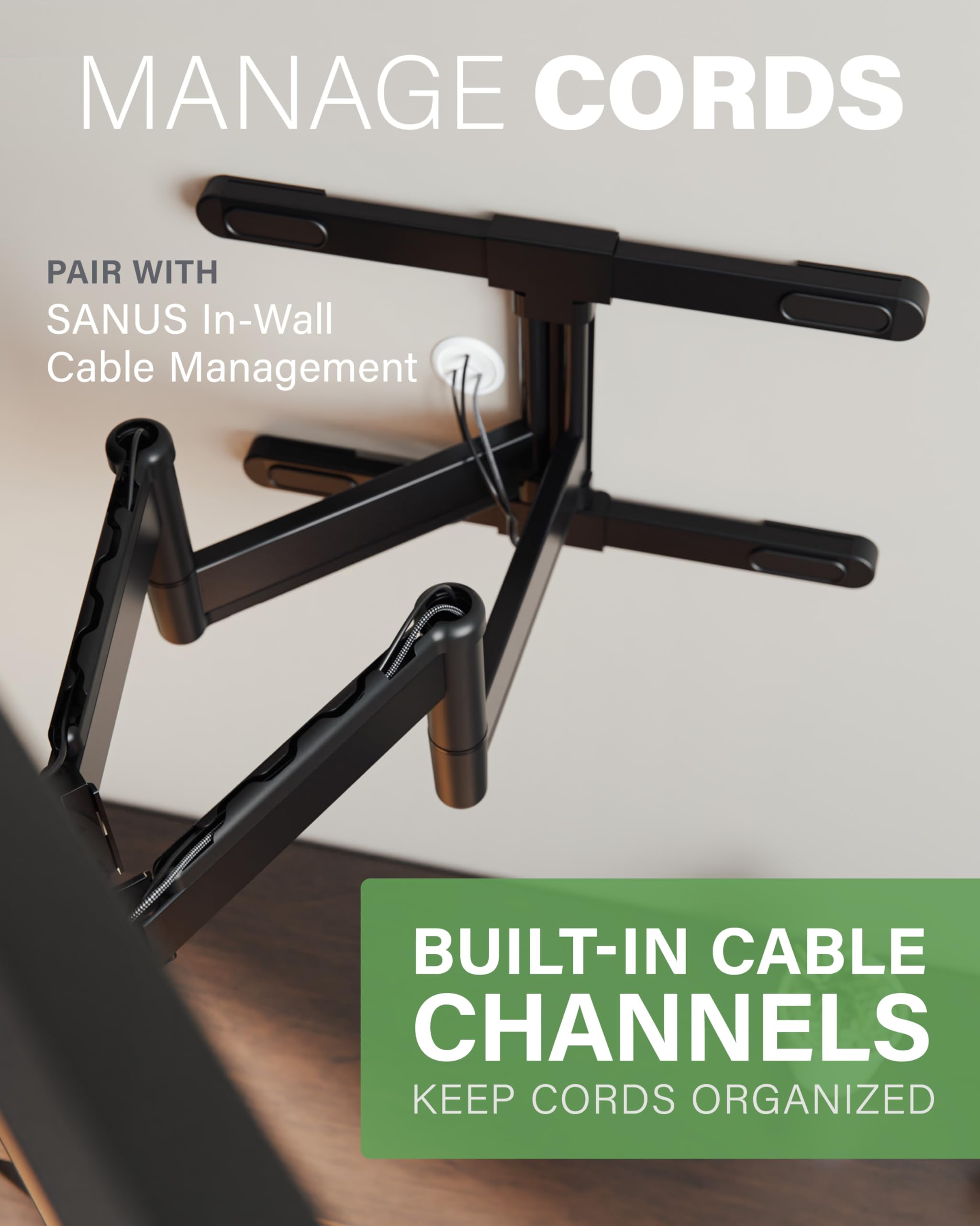 Easily route and conceal power and HDMI cables within the mount arms for a super clean and streamlined look.