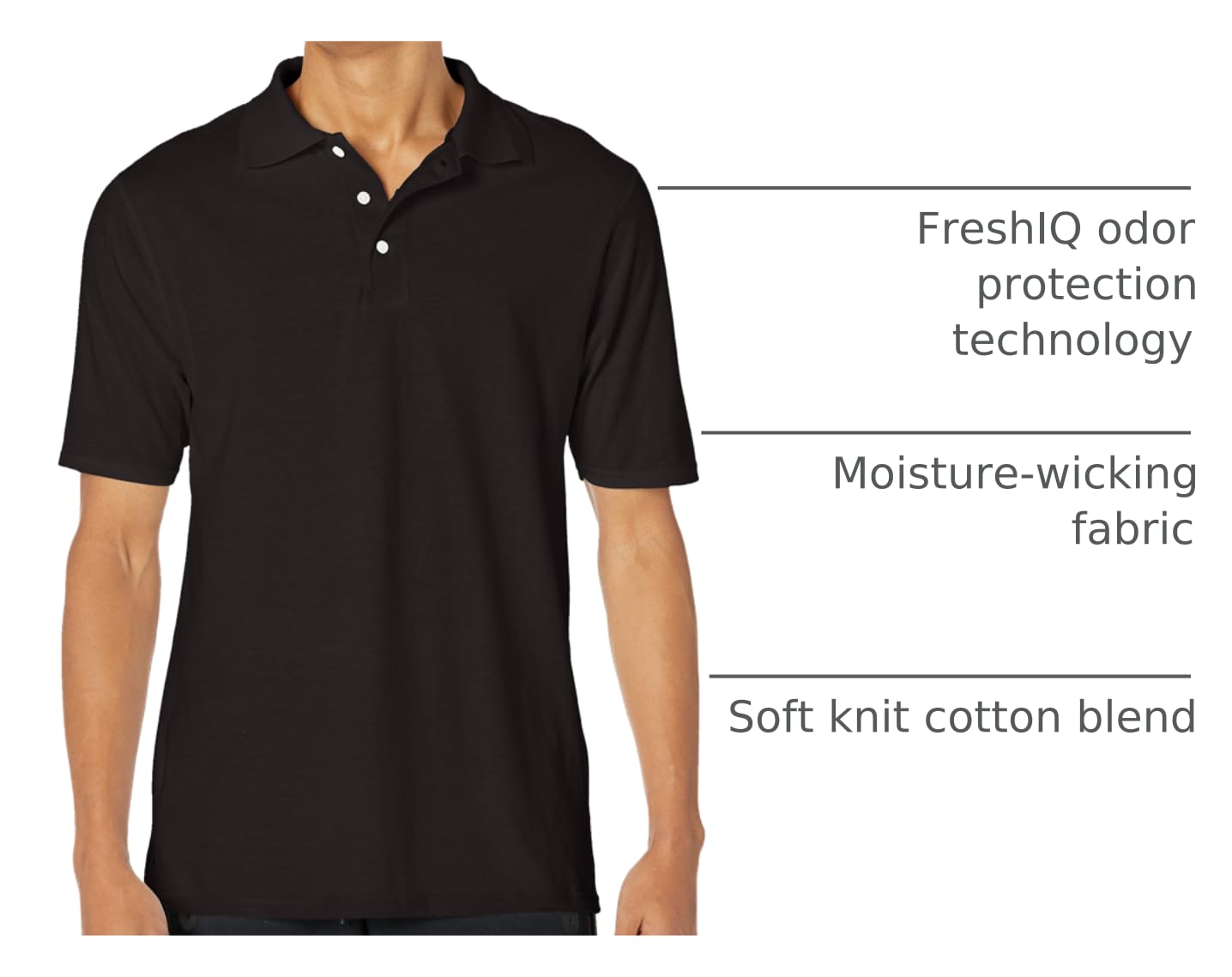 MOISTURE-WICKING - Hanes menβs polo shirt is made from a moisture-wicking fabric with a dynamic vapor. The cotton-blend fabric will keep you cool and dry from day to night.