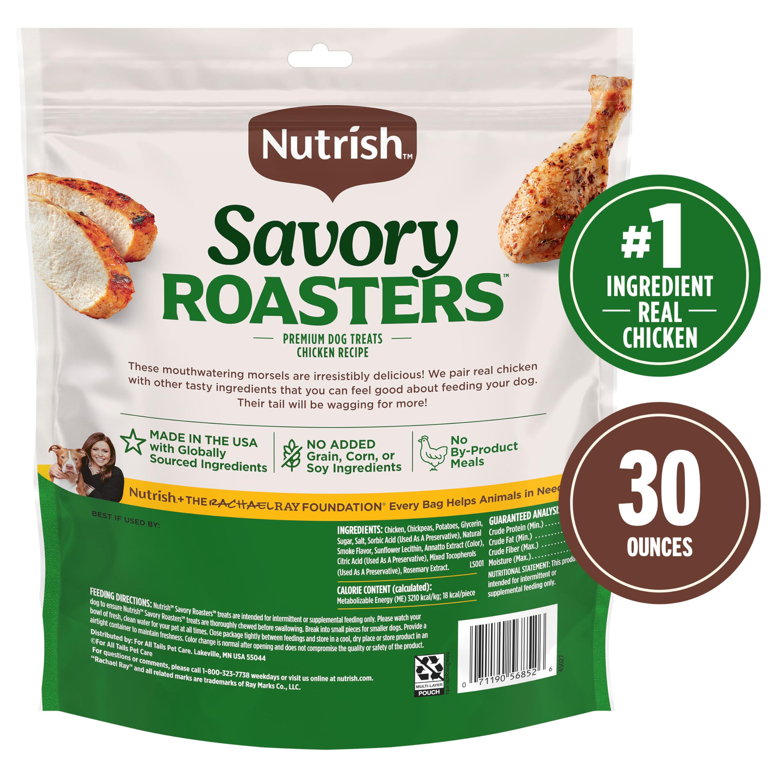 Product Description Make treat time extra special with Nutrish Savory Roasters with Real Chicken. These soft dog treats are made with real chicken as the #1 ingredient for a delicious roasted flavor your dog will love. Perfect training treats for all dog sizes, life stages and breeds, they’re made in the USA with globally sourced ingredients and contain no added corn or soy ingredients and no by-product meals. Plus, the resealable bag keeps them fresh and ready for whenever your dog deserves a little something special. Give your dog tasty, grain-free dog treats you can feel good about and a portion of your purchase will help animals in need through The Rachael Ray Foundation. Manufacturer Contact Information Post Consumer Brands, 20802 Kensington Blvd, Lakeville, MN 55044