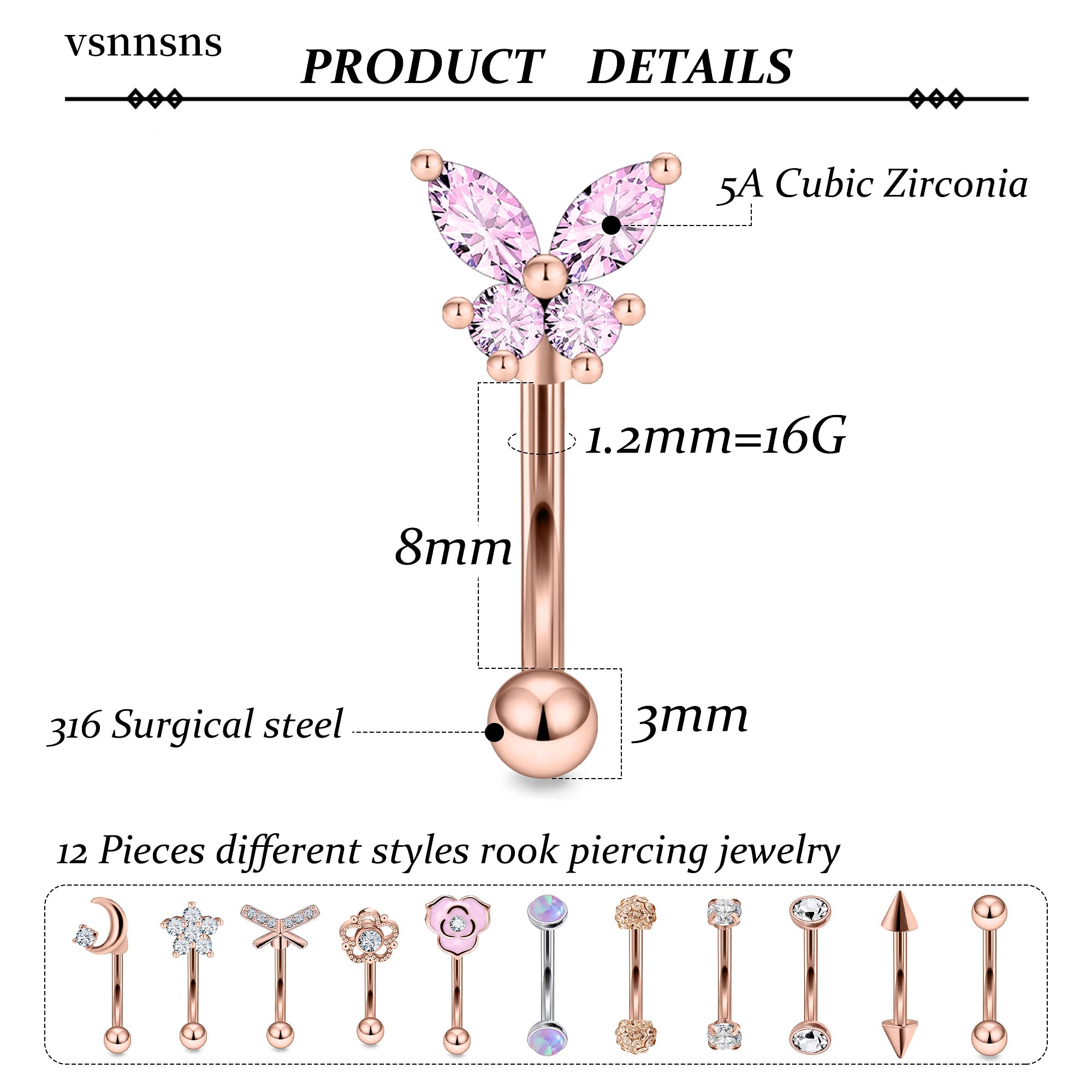 [SUITABLE FOR USE]: These Eyebrow Piercing Jewelry Can Be Used For Eyebrow Rings, Eyebrow Jewelry, Eyebrow Piercing, Rook Piercing Jewelry, Daith Piercing Jewelry, Vertical Labret Lip Jewelry, Small Belly Button Ring, Rook Earrings, Daith Earrings.