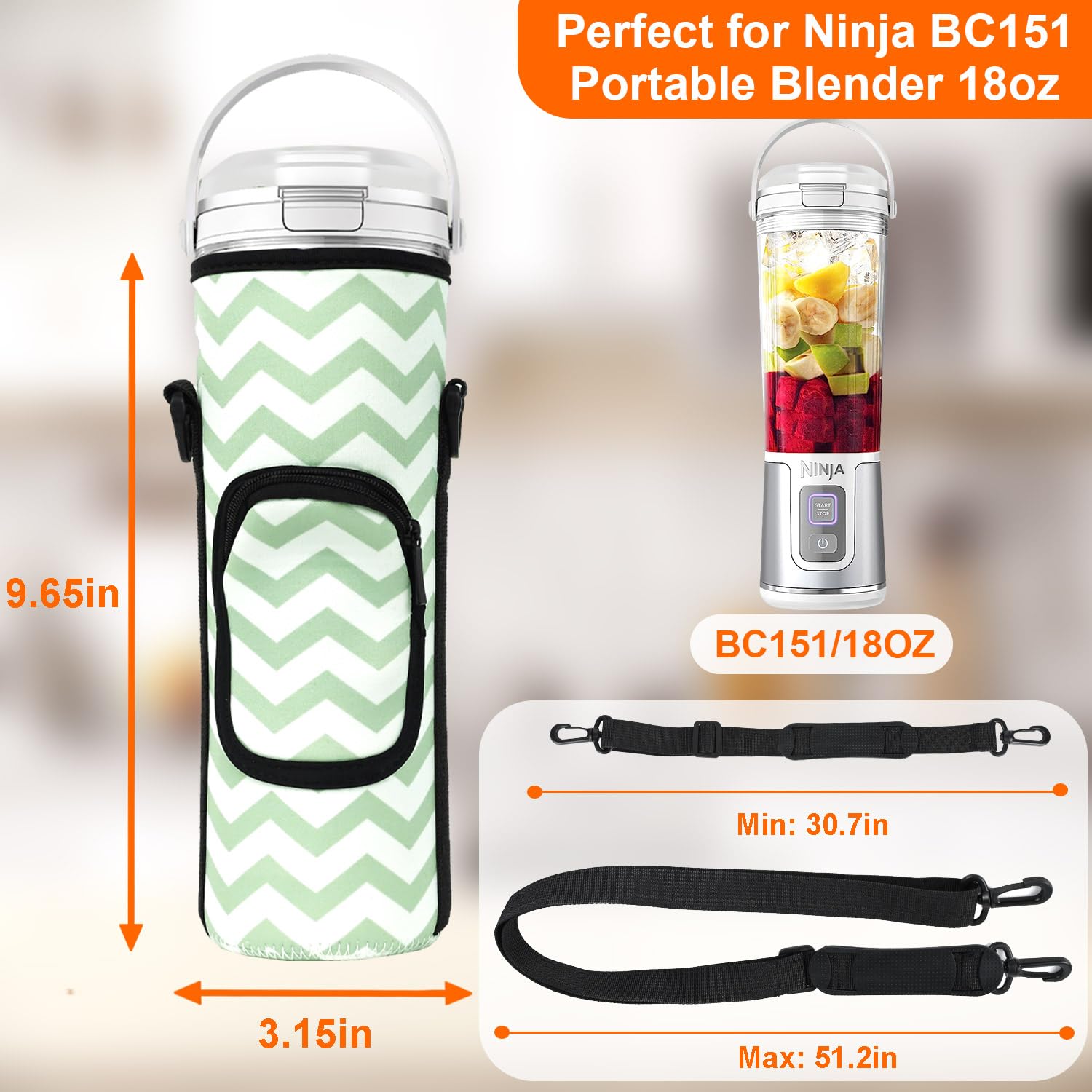 【WIDELY COMPATIBLE】-Designed for Ninja BC151 Series Blast Portable Blender, this bag fits the shape and size of the blender perfectly, ensuring that the blender stays securely inside the bag, keep your BC151 Series Blast Portable Blender safe and secure while on the go. Dimensions: 3.15"D x 3.15"W x 9.65"H(8 x 8 x 24.5cm).