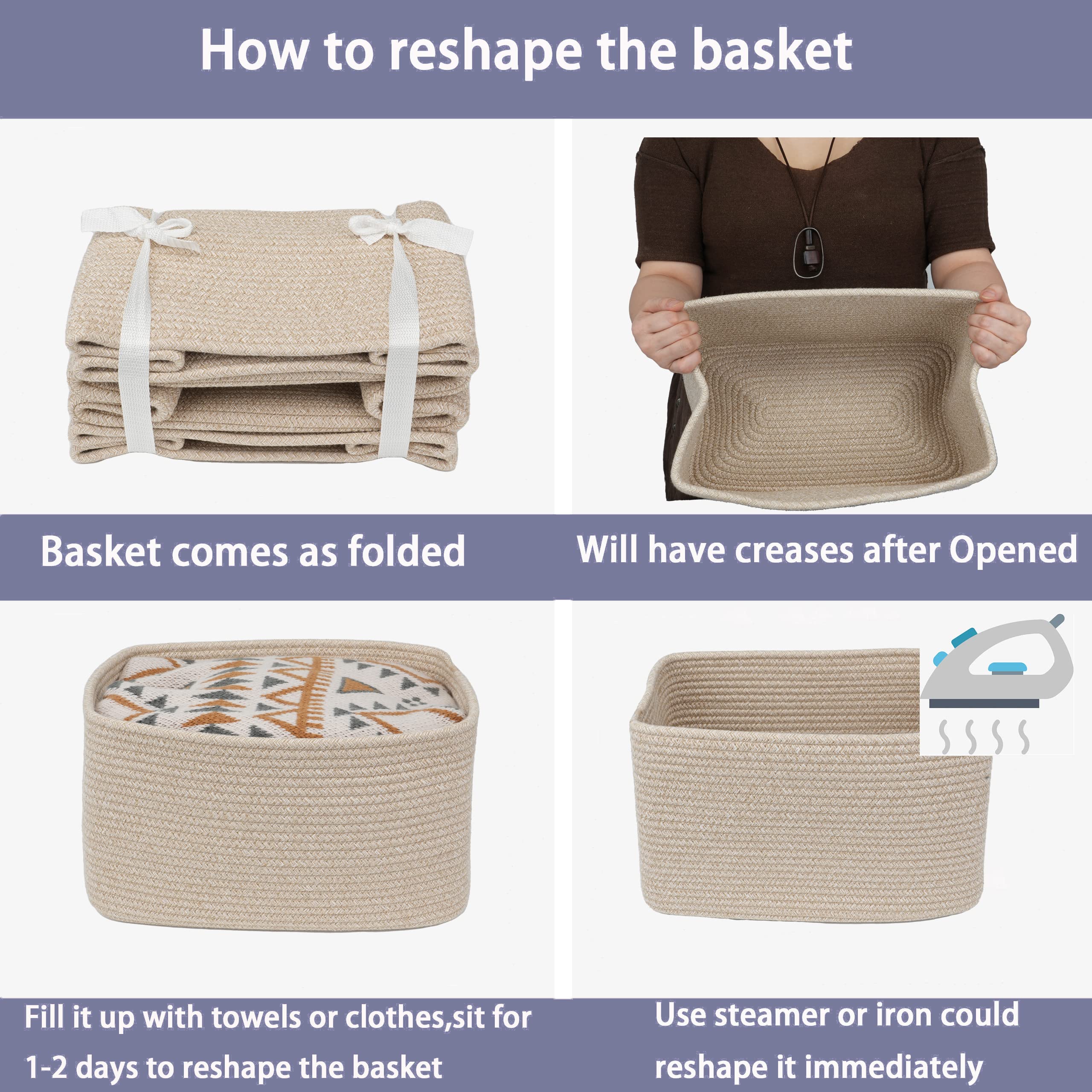 5, Note:Products comes as folded, will have crease. Fully fill the basket with towels or clothes waiting for 1-2 days could reshape the basket. Steaming or Ironing could reshape the basket as well.