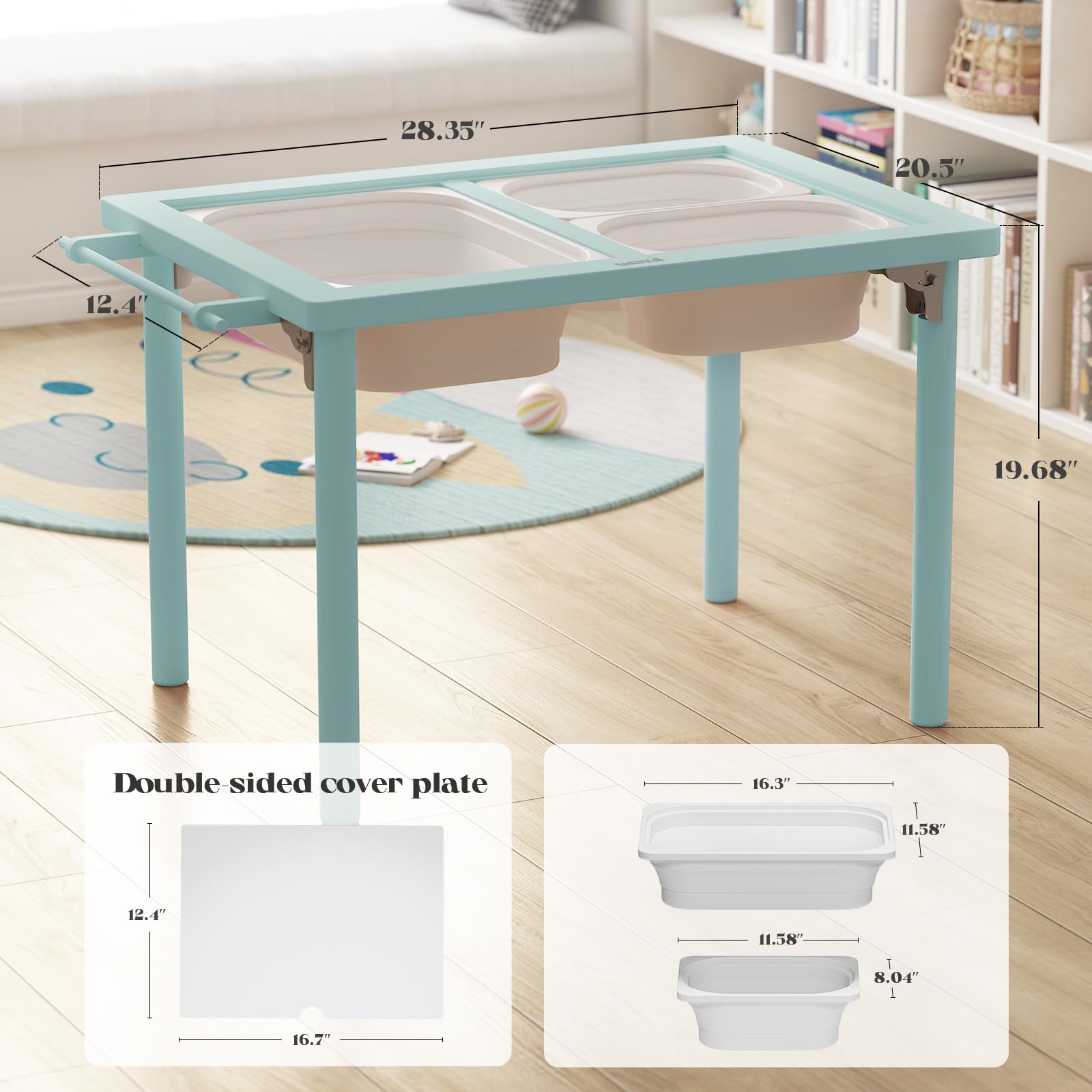 【Child-Safe Design – Rounded Corners & Non-Slip Feet】 Safety is a priority. This sensory table features rounded corners to prevent accidents, while non-slip pads on the table legs ensure stability during use. The non-slip design also protects your floors from scratches and minimizes noise, making it perfect for home or classroom settings