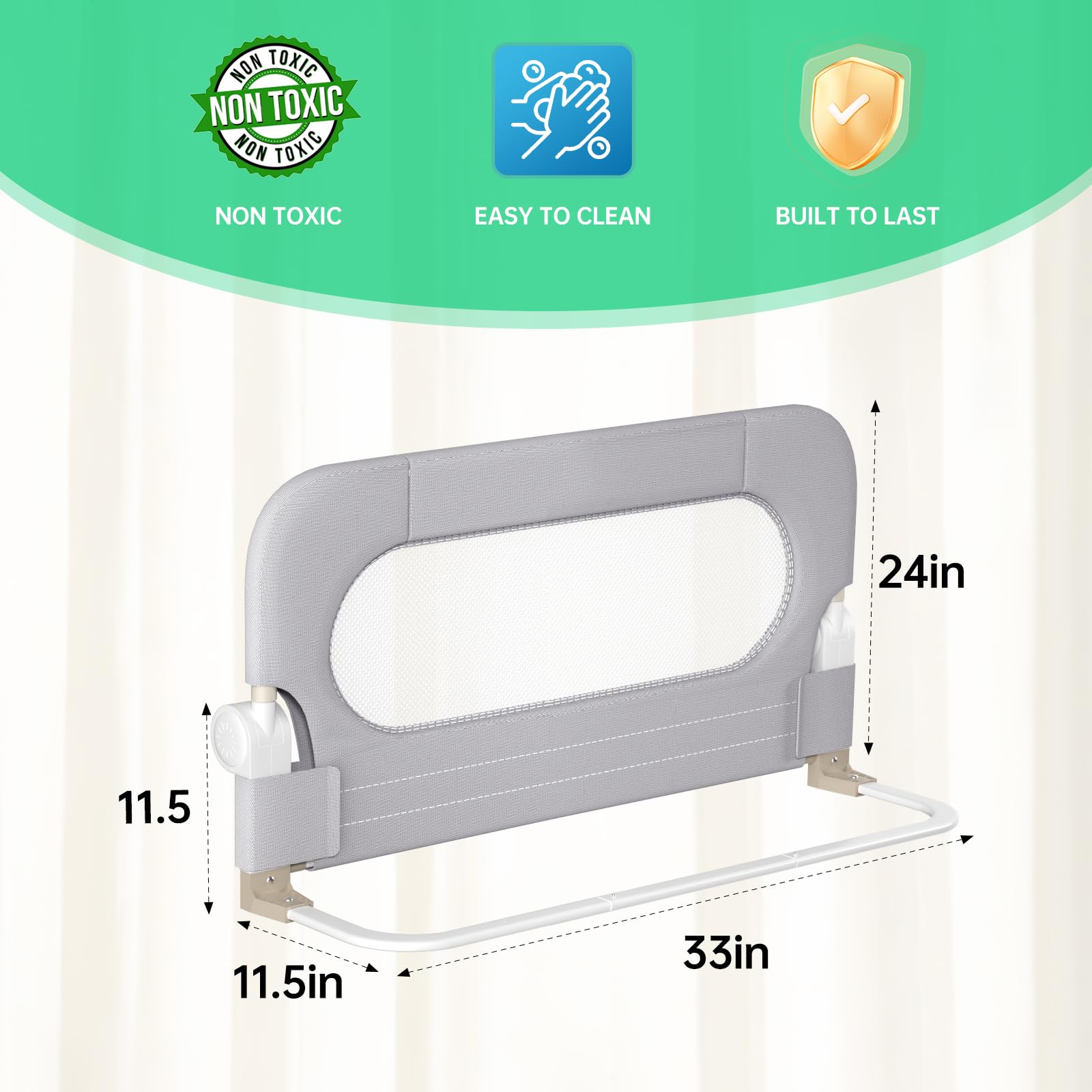 Collision Protection:we have made built-in sponges wherever the guard rail can touch to prevent your child from getting hurt by collision
