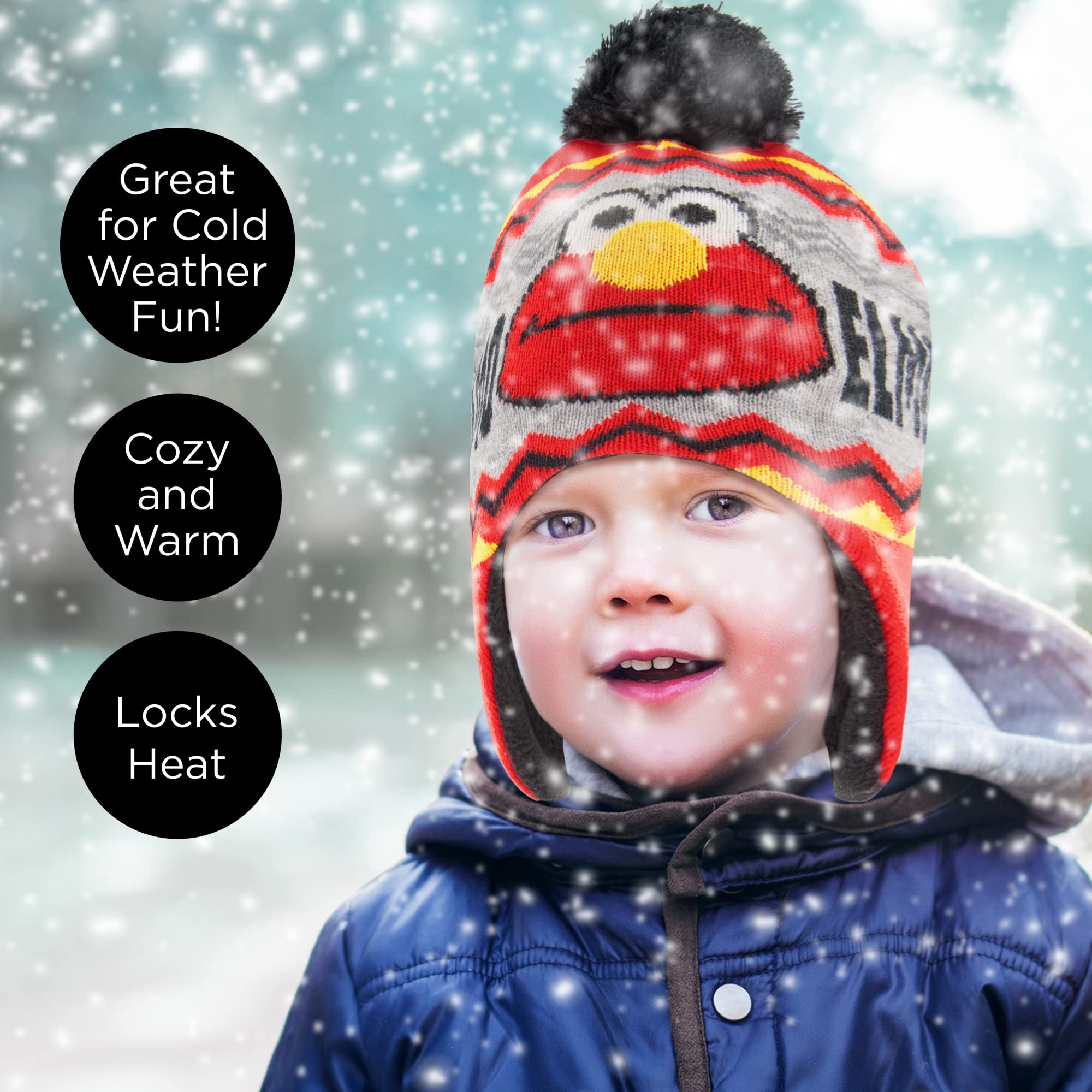 ADORABLE DESIGN: Matching Elmo pattern Winter Hat and toddler Mitten set with thick earflaps, and features Elmo character patch embroidered on the front. Matching Blue/Grey/Orange Toddler Mittens with a Blue/Grey/Orange cuff features an Elmo gripper print design, Great coverage for the Head, Ears, and their cute little Hands.