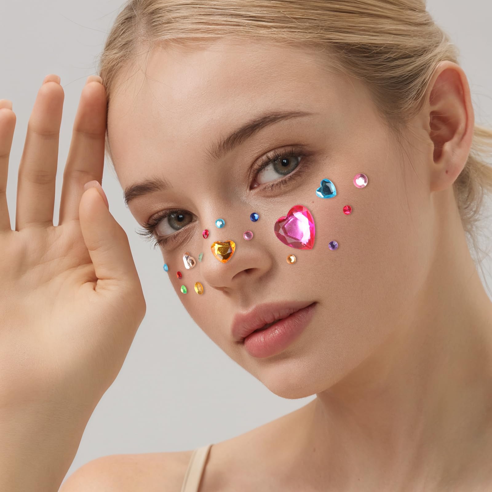 Festival Makeup Face Jewels-- Give your beauty look some sparkle with our face jewels and gems. Festival makeup gems and face jewels are made of high quality ABS material without odor and don’t irritate your skin. Whether you’re accentuating cheekbones with freckle-like rhinestones, framing eyes with bold statement gems, or adorning your hair with pearlescent accents for a festival-ready vibe, this set adapts to your unique creativity