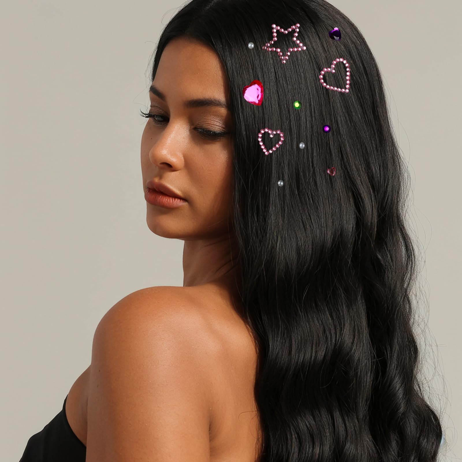 Gems For Hair-- The hair gems is easy to use, you just need to easily peel it off the plastic sheet and stick on pearls what you want without additional glue. Easy to remove and does not leave any residue on hair or skin. Hair gem stick on are for daily use; it is no longer about special events or going to concerts to wear bold makeup