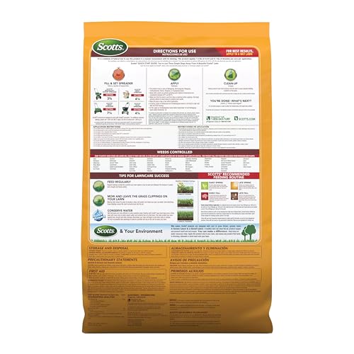 It's simple: treat weeds and feed your lawn with Scotts® Turf Builder® WinterGuard® Fall Weed & Feed5 in the fall for a better lawn next spring. This weed killer plus lawn fertilizer controls over 50 listed lawn weeds, including clover, dandelion, plantain, morningglory, chicory, evening primrose, and purslane. Scotts® Turf Builder® WinterGuard® Fall Weed & Feed5 can be used on Bahiagrass, Bermudagrass, Bluegrass, Centipedegrass, Fescue, Ryegrass, or Zoysiagrass. Apply on a calm day when weeds are actively growing and temperatures are consistently between 60°F and 90°F. Make sure your grass is wet from dew or watering, as this helps particles adhere to weed leaves to produce the best results. We recommend using a Scotts® spreader to apply this product. For Scotts® broadcast/rotary spreaders, use a setting of 3 ¾. For Scotts® drop spreaders, use a setting of 7 ¼. For Scotts® Wizz® spreader, use a setting of 4 ¼. For Scotts® Elite spreader, use a setting of 4 ¼. Do not water your lawn for 24 hours after application or apply if rain is expected within the next 24 hours. One 33.84 lb. bag of Scotts® Turf Builder® WinterGuard® Fall Weed & Feed5 covers 12,000 sq. ft.