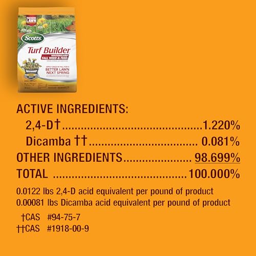 Scotts Turf Builder WinterGuard Fall Weed & Feed5 weed killer and lawn fertilizer controls listed weeds and feeds grass in the fall for a better lawn next spring