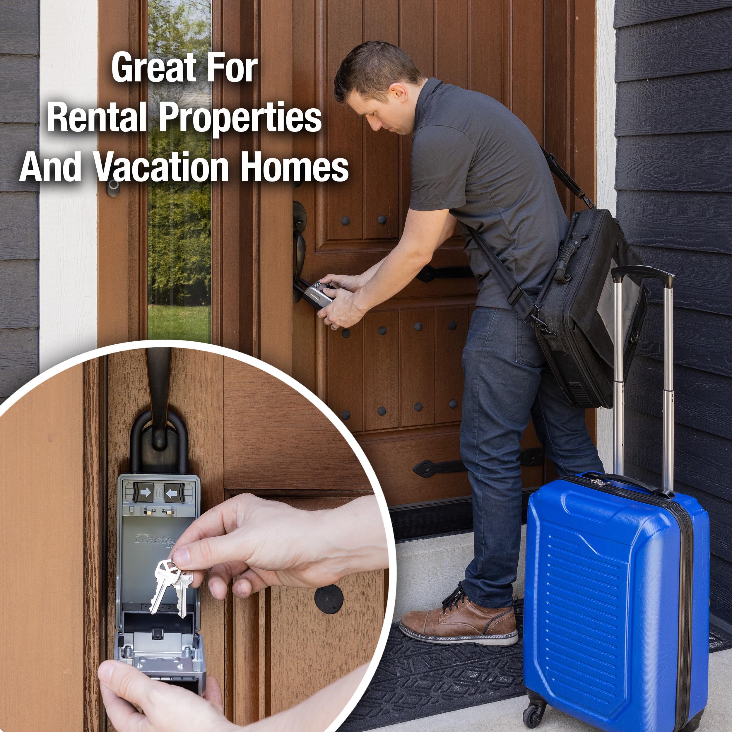 The Master Lock 5480EC Large Key Lock Box sets a new standard for convenient security, offering reliability and ease of use. Built for dependable protection and easy operation, it ensures seamless access for anyone entering your home or property. With an upgraded, larger storage capacity from previous models, this lock box accommodates not just keys but also fobs and access cards for added versatility. This redesigned key lock box simplifies and streamlines day-to-day life, helping you to move easily between locations. The new built-in bin holds your keys in place to prevent jamming, while large ergonomic dials make it easy to open even with one hand. Its weatherproof dial cover and solid metal body means your keys, fobs and cards are safe from both harsh environments and tampering attempts. The removable shackle adds flexibility, allowing you to install the lock box wherever you need a dependable way to share keys. Whether it's for your family, home care professionals, or service providers, this key safe offers a dependable and convenient solution for granting access to your home. Master Lock’s Lifetime Limited Warranty provides peace of mind from the security brand you can trust.