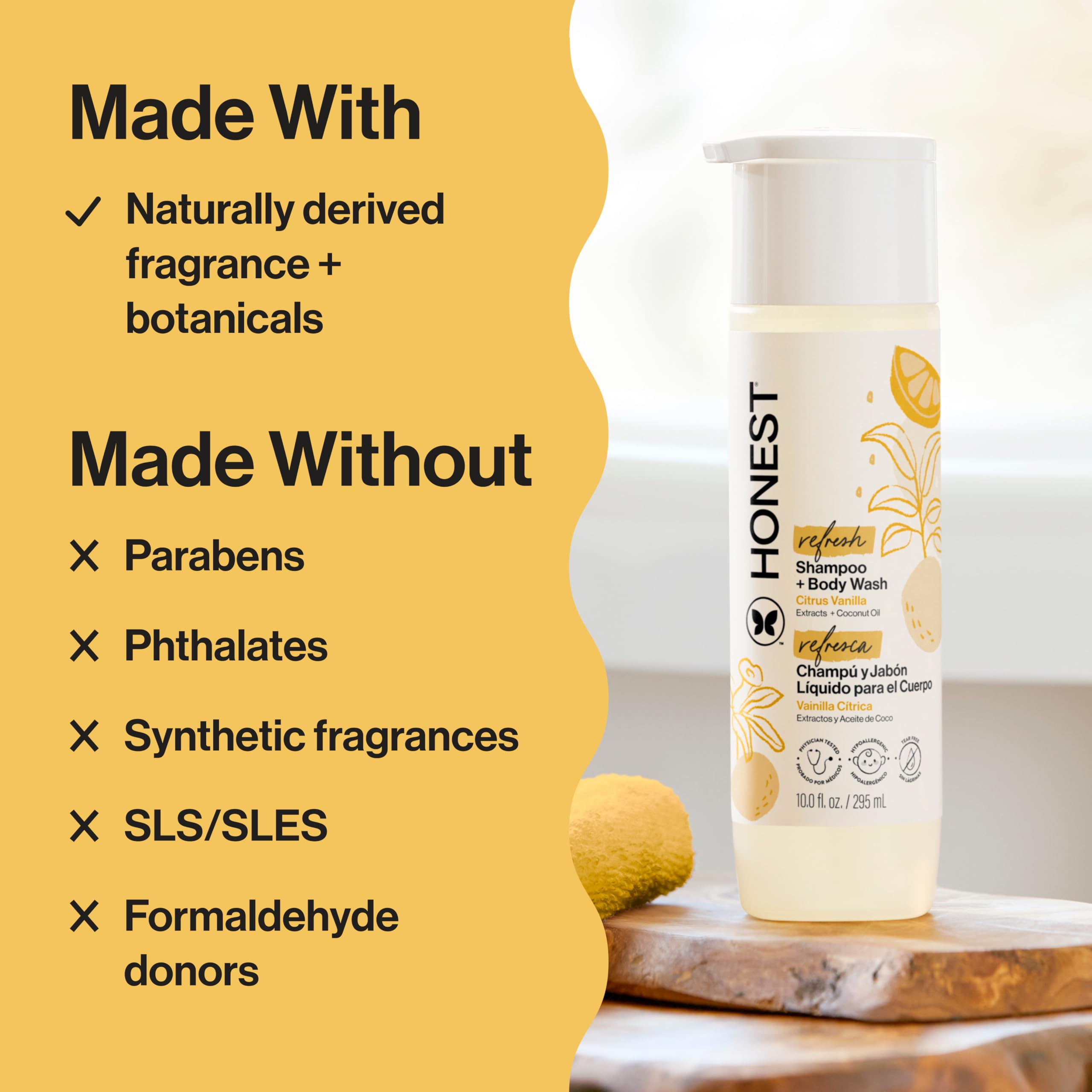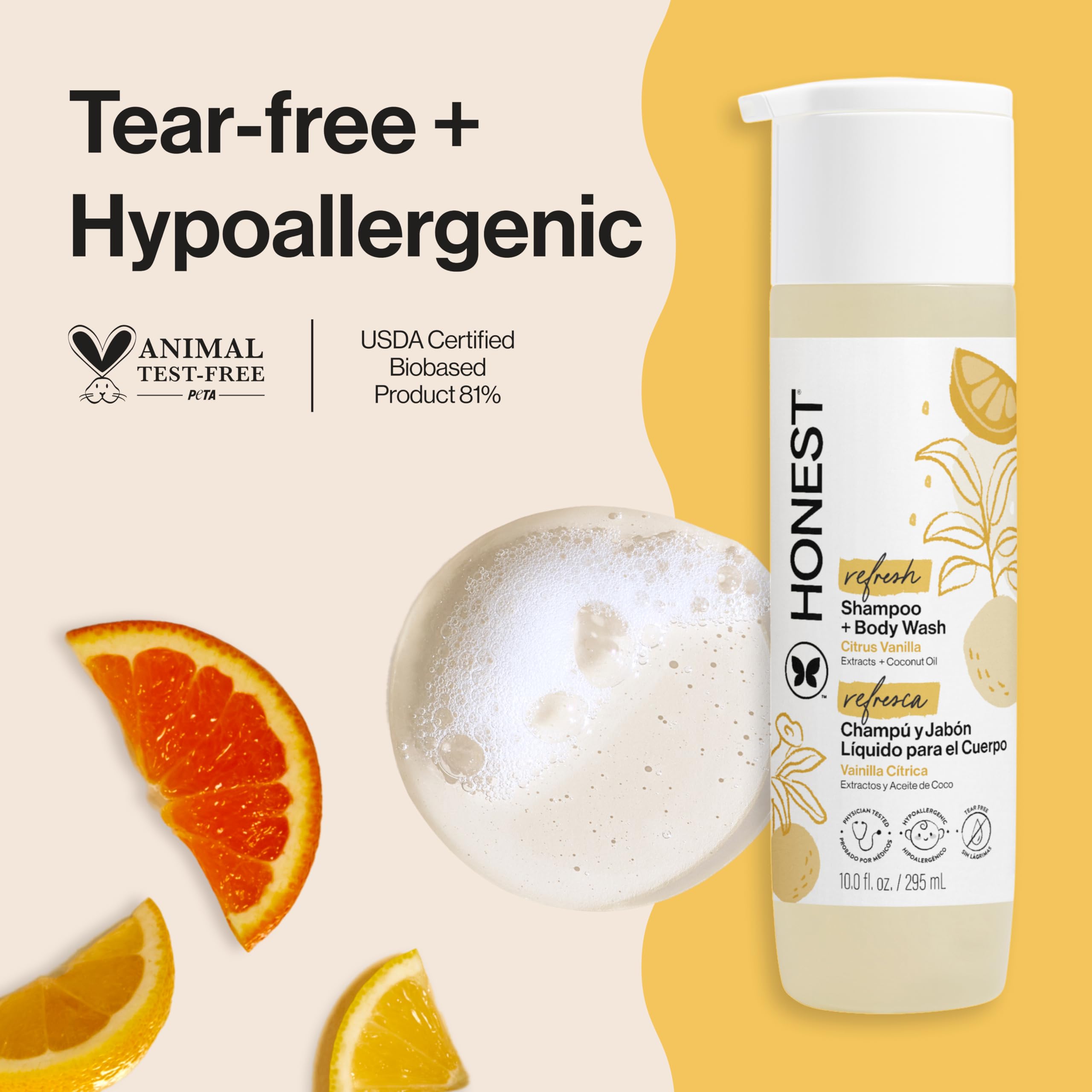 Tear-Free; Hypoallergenic; Dermatologist-tested; Naturally Derived ingredients; Cruelty Free; Made in USA; Sensitive Skin-Approved