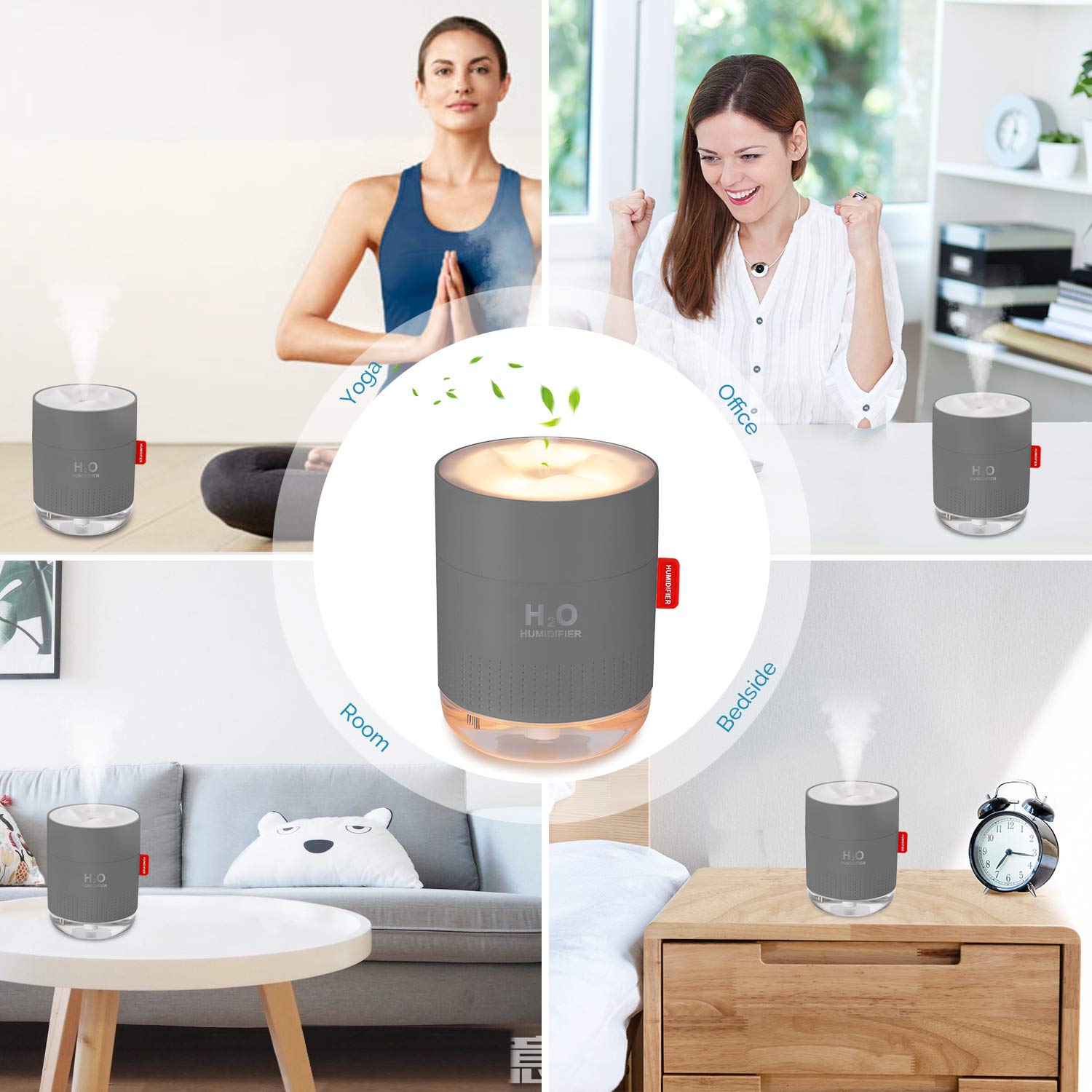 【PORTABLE MINI HUMIDIFIER】Portable and small design (3.74*5.07inch) is very easy take with you anywhere and super perfect for travel, bedroom, office, which is effectively moisturize dry skin and help you reduce skin peeling.