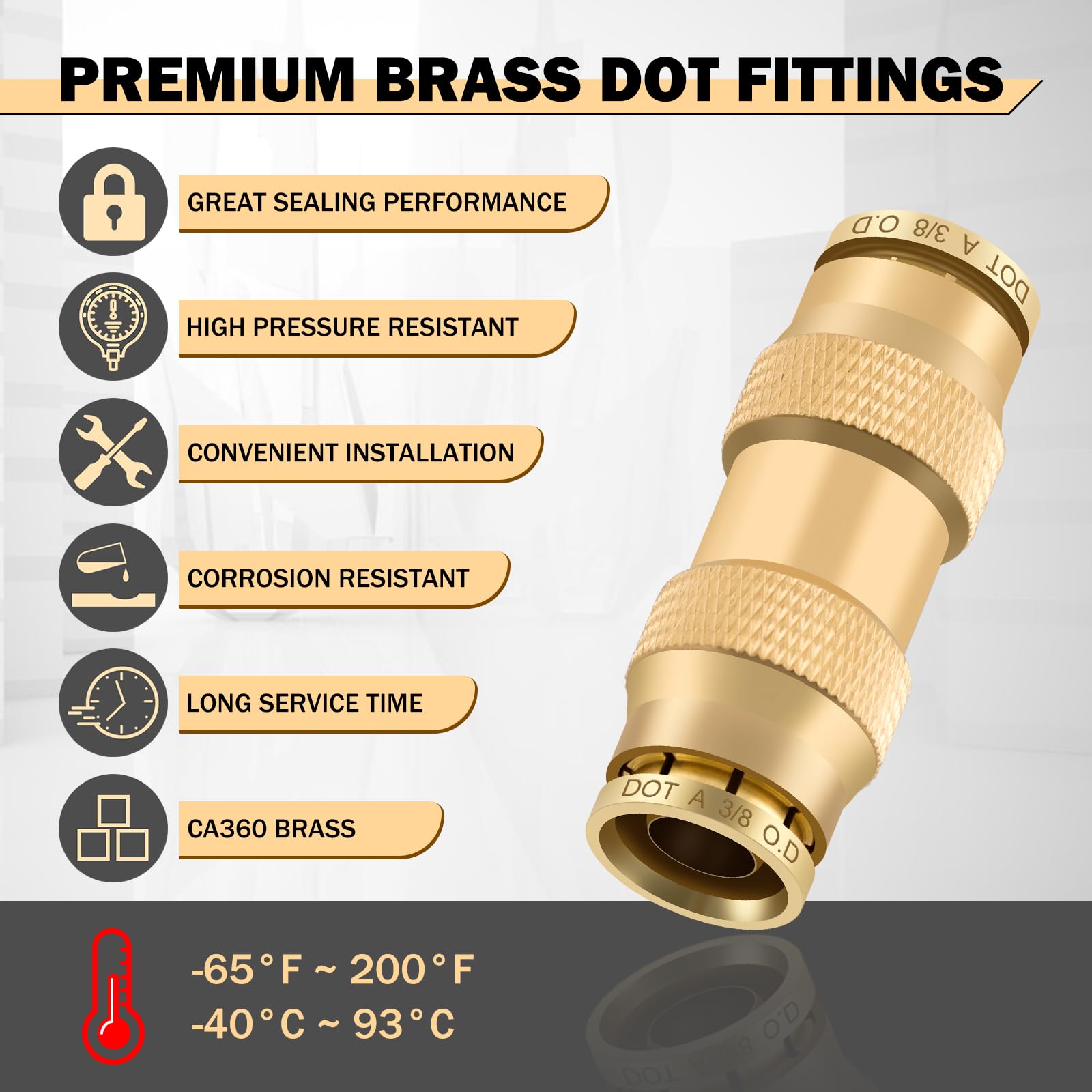 PREMIUM QUALITY: The CheeMuii DOT air line quick connect fittings are made of high-quality CA360 brass, meet D.O.T. FMVSS 571.106 approved, SAE J1131 air brake system requirements, with corrosion resistance, high-temperature ductility, low permeability and long service life