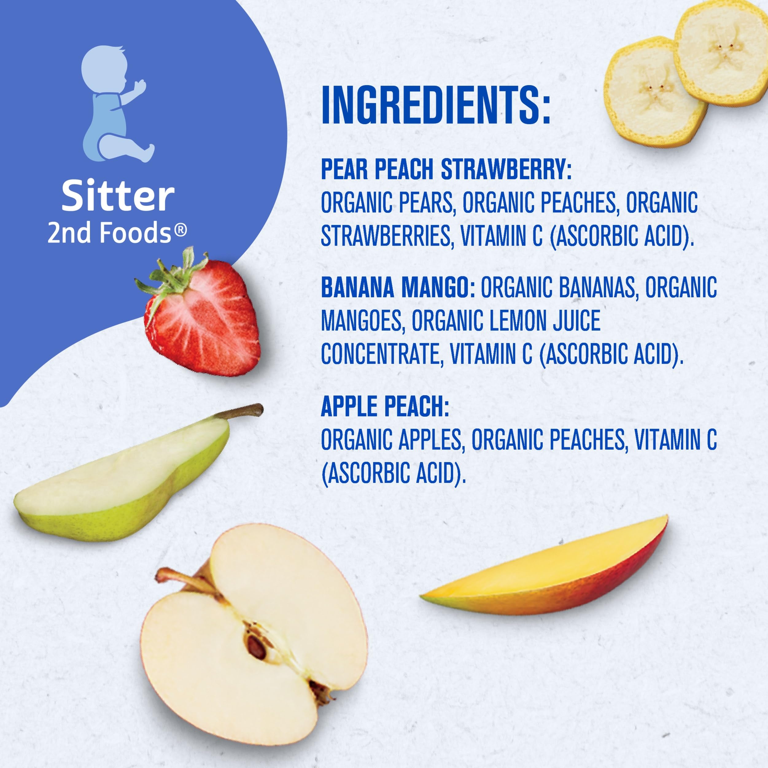 VARIETY PACK: Our nutritious fruit is selected and made with strict quality standards just for babies. This organic baby food fruit variety pack comes with pear peach strawberry purees, banana mango purees, and apple peach purees