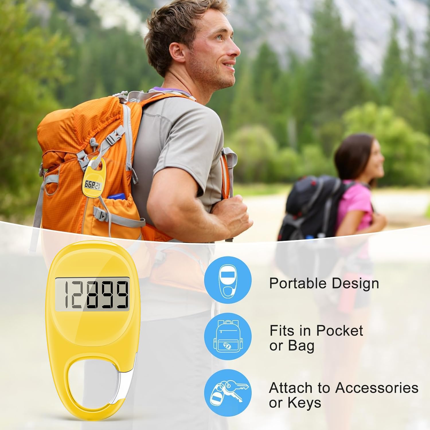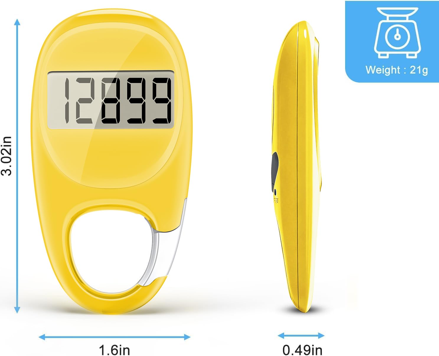 Innovative Carabiner Design: Featuring a creative carabiner design, this step counter easily hooks to your belt loop, pocket, or bag. No lanyard or clip needed, and its simplicity ensures easy usability