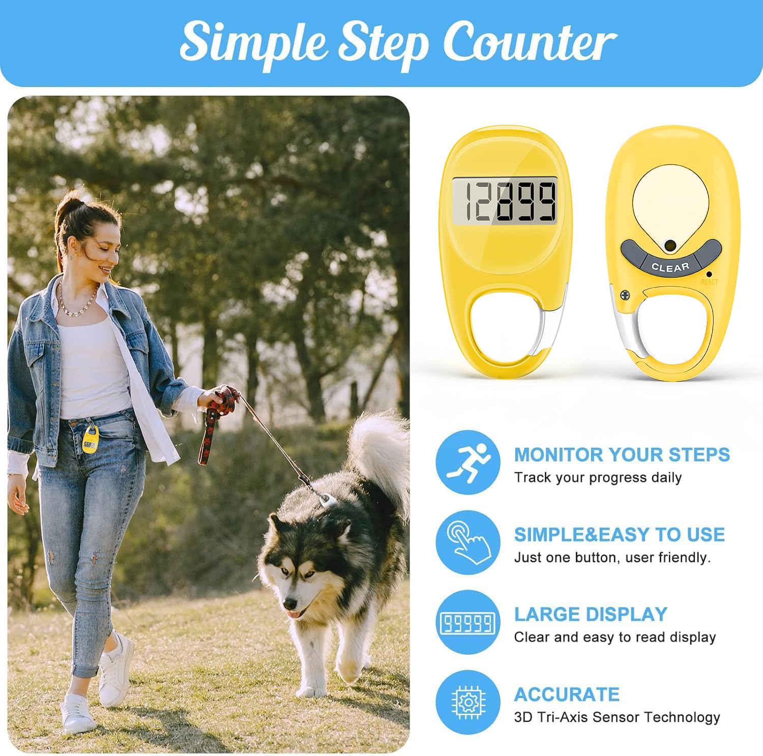 Easy to Reset: Our purple pedometer is designed for effortless operation. Hold the CLEAR button on the back for 3-5 seconds, and your step count returns to 0, ready for your next walking adventure