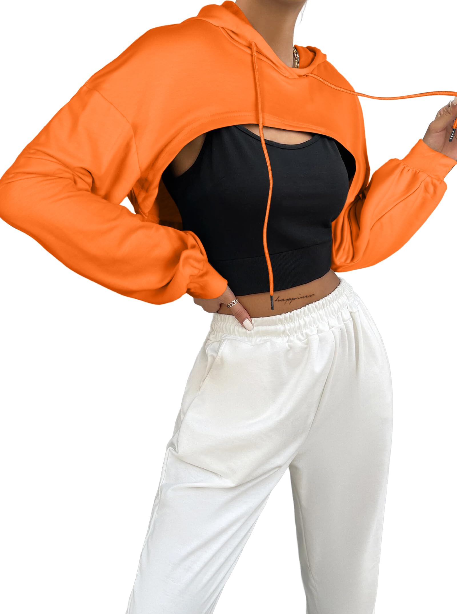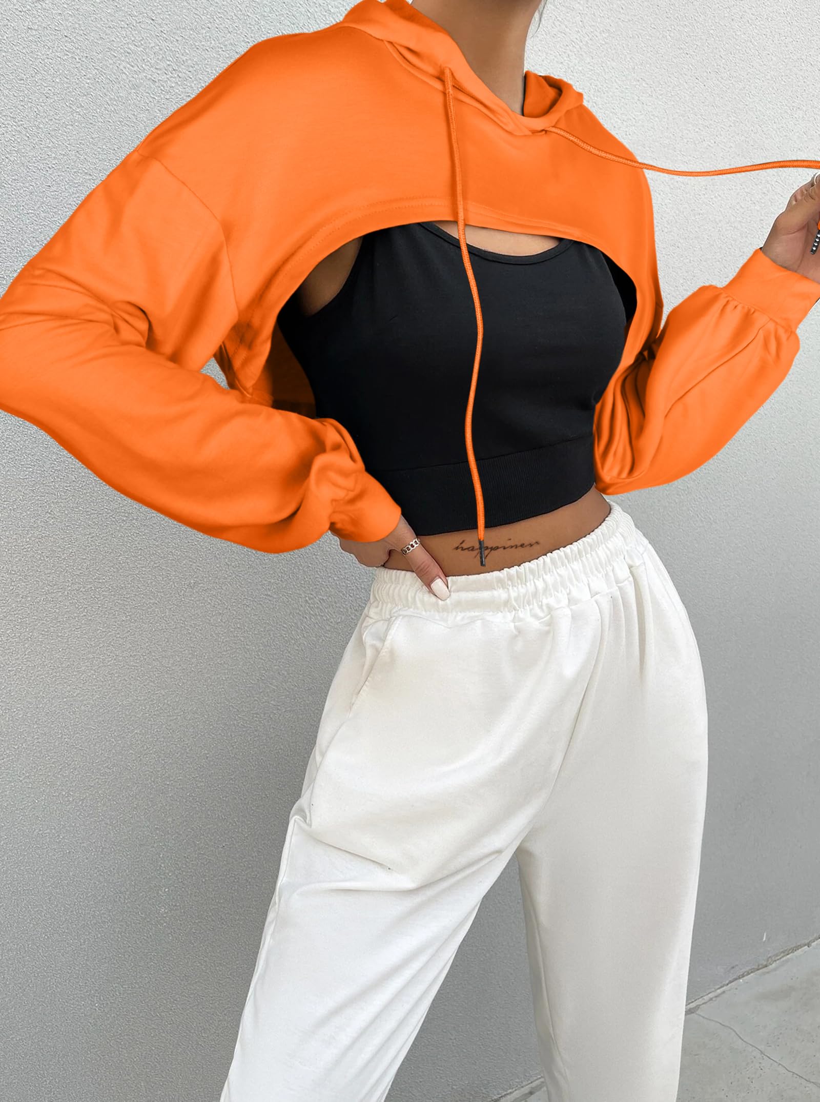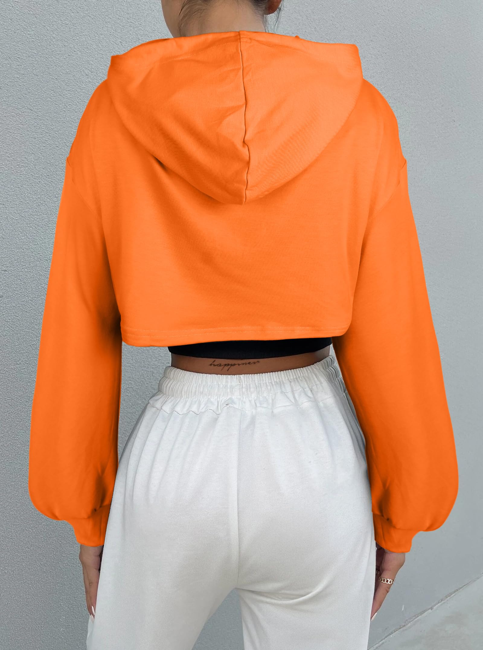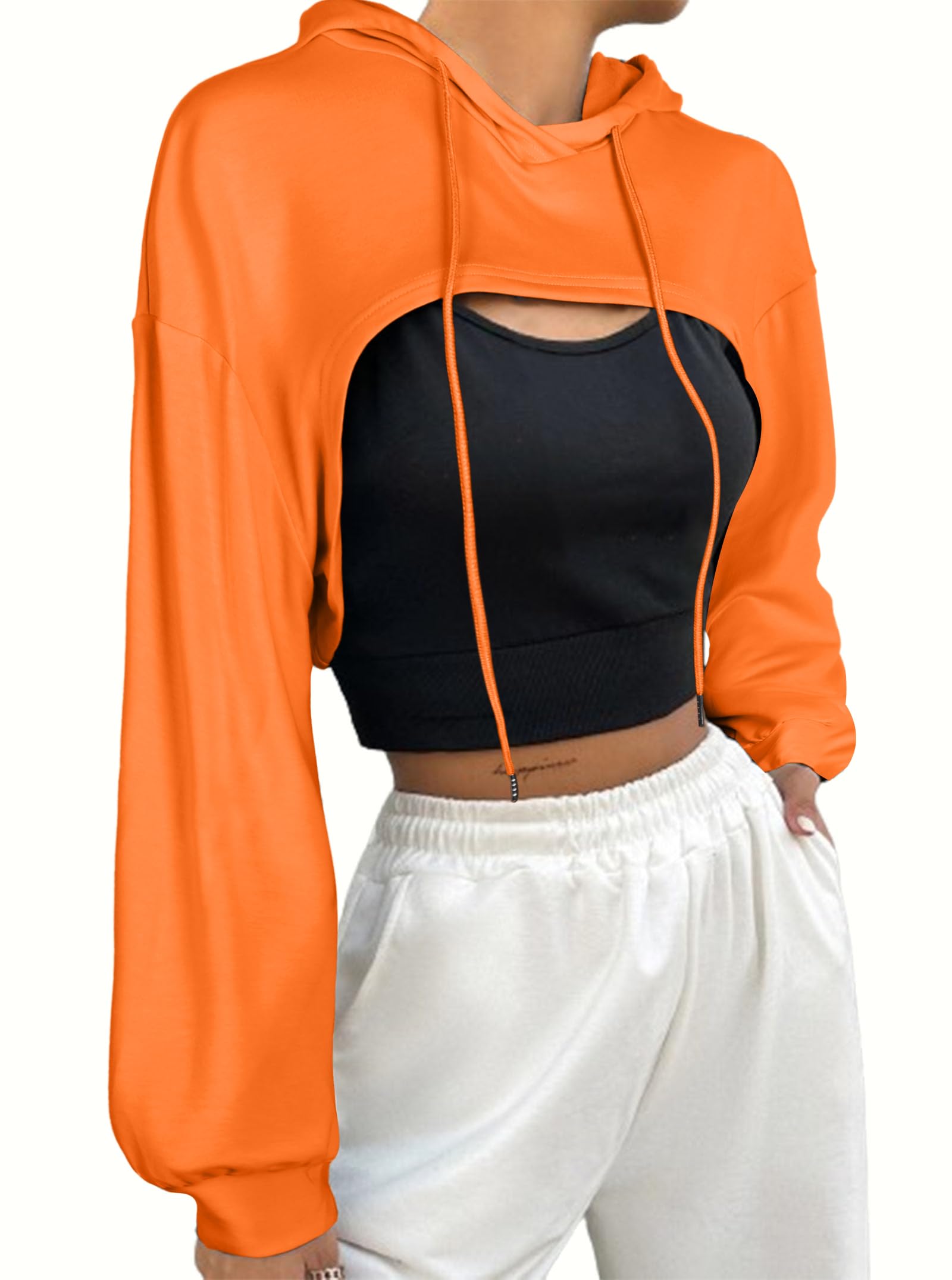FEATURES: Crop hoodies for women, long sleeves, cropped length, drop shoulder, loose fit, drawstring hooded, one piece, workout crop tops for women