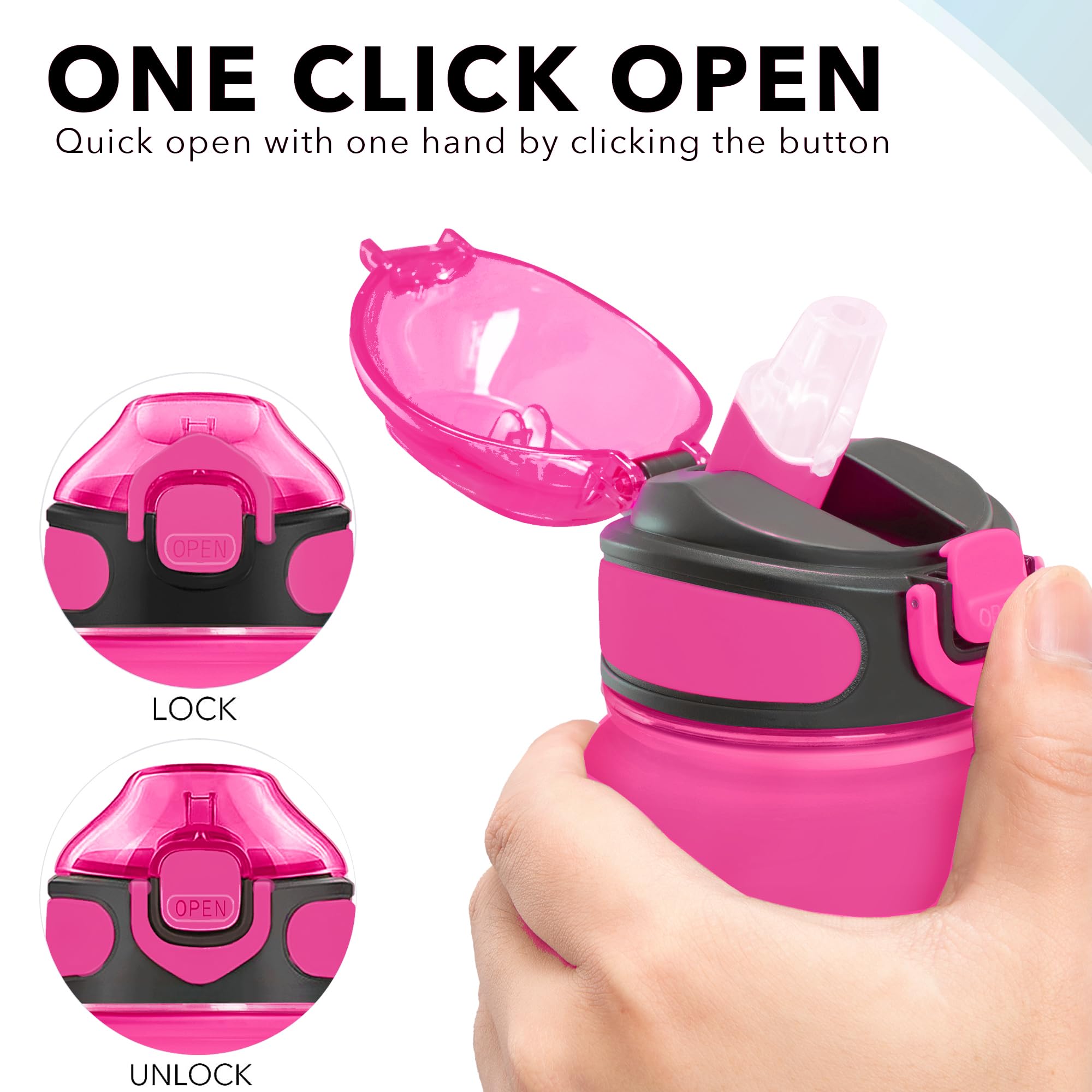 【Humanized Design】Open with one hand by clicking the button to access water. Highly suitable for boys and girls, and all ages. The flip-top lid is used a secure lock, making it dust-free and leak-proof. The frosted texture of the water bottle allows you to hold it better.