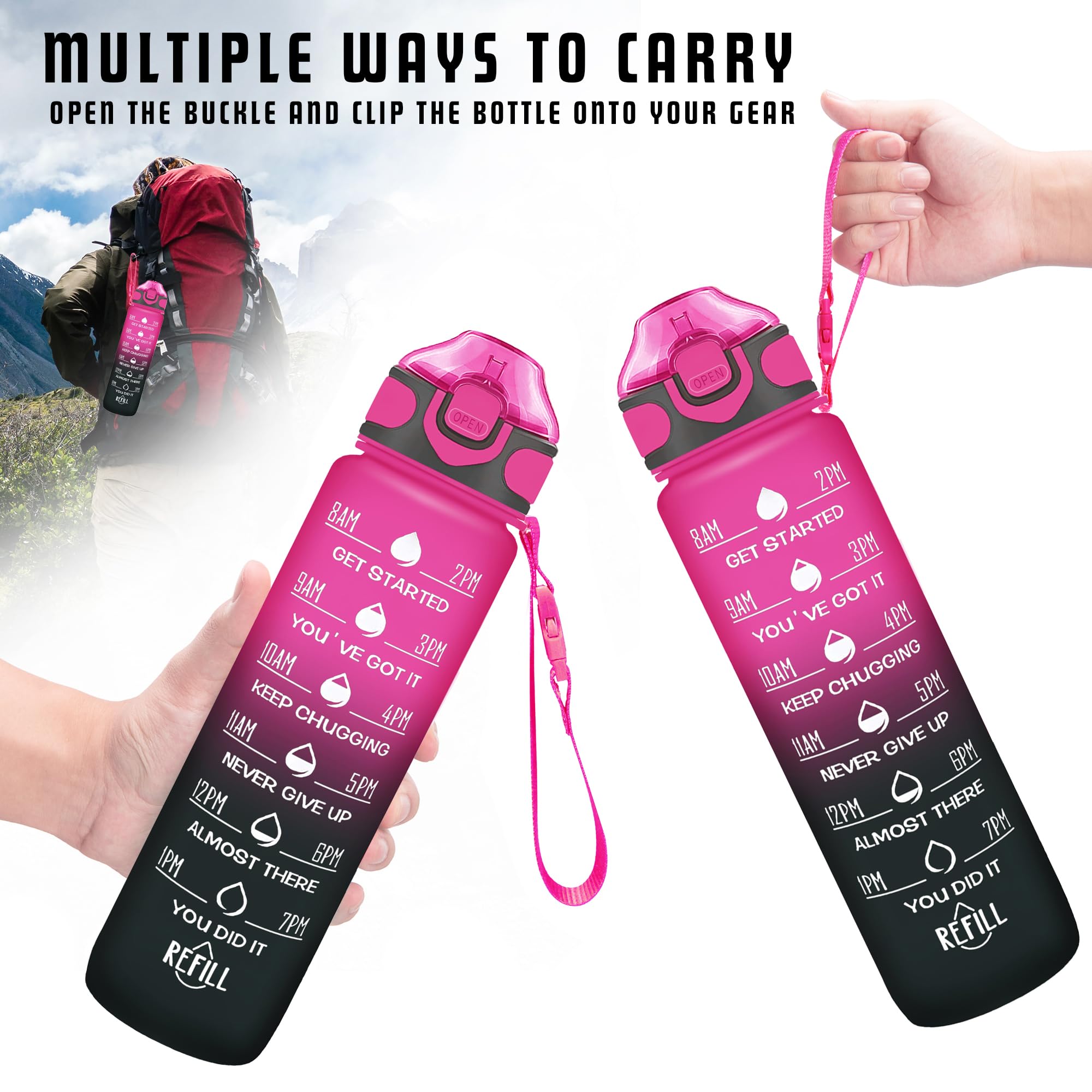 【Buckle Handle Design】Our water bottle with carrying strap and release buckle, you can choose hands-free or handle type, convenient for you to connect 32 oz water bottle to your backpack, bike, or travel bag. Featuring a wide mouth opening, easy to clean and add ice. Ideal for travel, hiking, gym, and any indoor & outdoor activities.