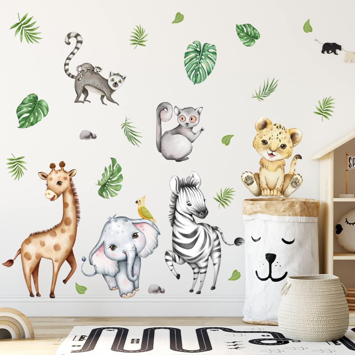Widely Used: These jungle animals animal stickers are perfect for home decoration. They can be used in children's bedrooms, nurseries, playrooms and living rooms. It can be used on almost any smooth surface, including doors, walls, windows, furniture, baby girl and baby boy bedrooms, nurseries and living room cabinets. It is also perfect for public places where children can go, such as libraries, activity rooms, dental offices, kindergartens, daycare centers, classrooms, etc