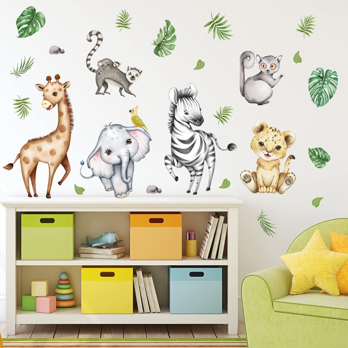 Package Contents: You will receive a watercolor jungle animal wall stickers, including giraffes, tigers, elephants and other animal wall stickers, suitable for living room, bedroom, playroom, nursery, classroom, daycare, kindergarten and other wall use