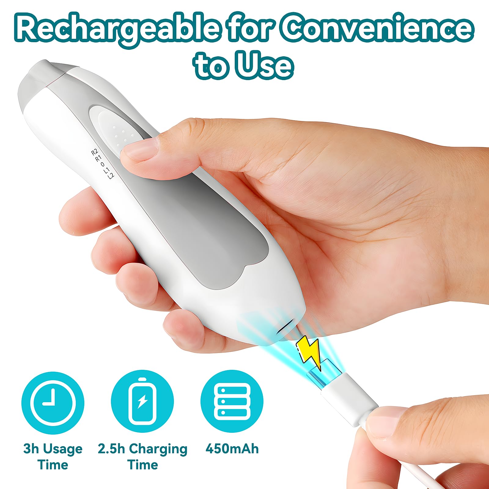 Rechargeable Baby Nail Trimmer – Built-in 450mAh large-capacity battery, 2.5 hours charging time, can be used continuously for 3 hours, making it more convenient for you to trim your baby's nails.
