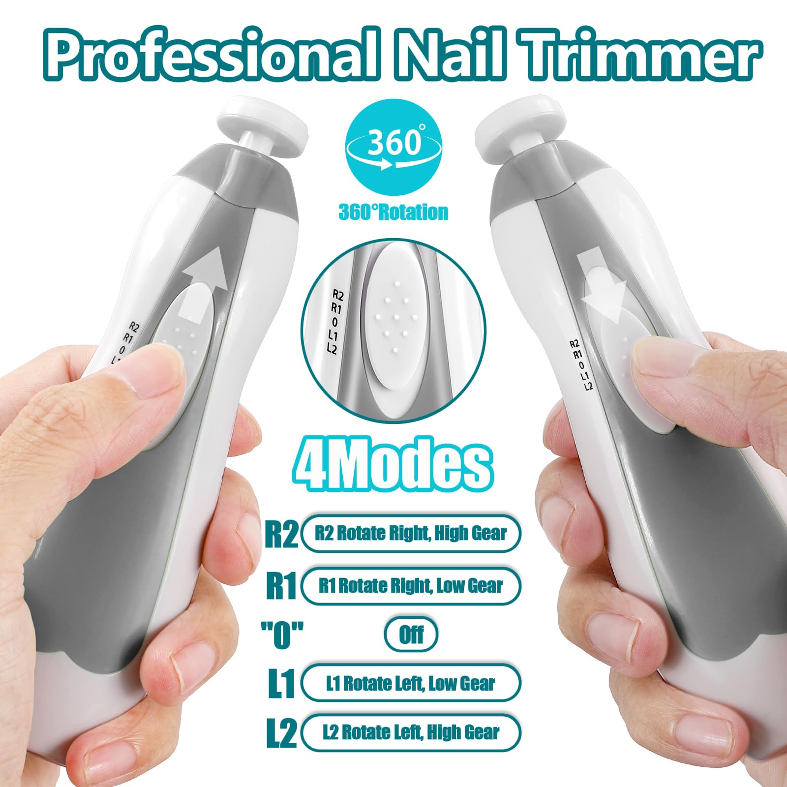 Versatile Settings – There are multiple speeds (high/low gear) and rotation patterns (right/left rotation), so you can try out different nail filing positions as per your convenience for neatly trimmed nails.