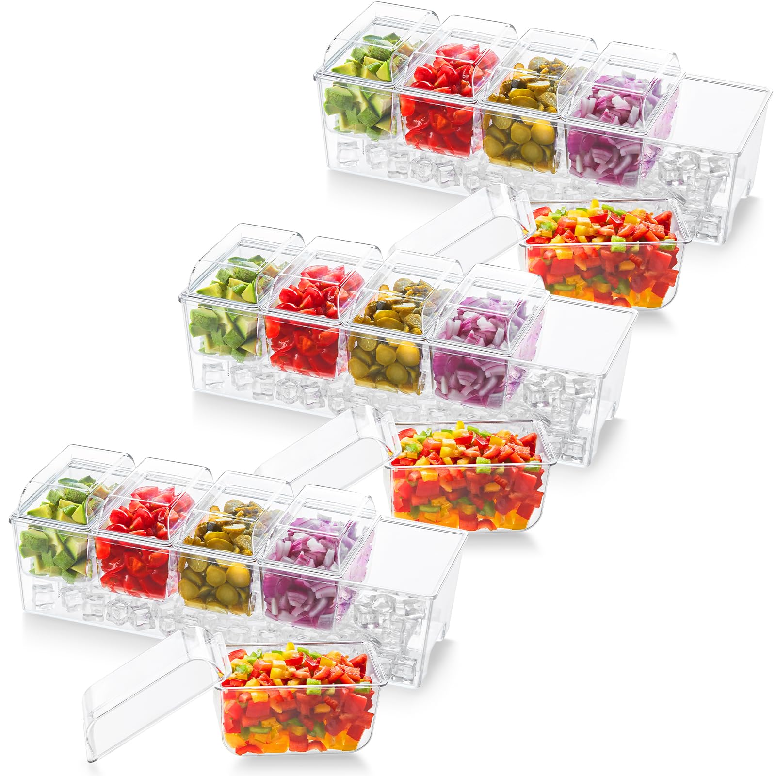 Preserve Freshness: The lower compartment of the condiment caddy can hold ice cubes or crushed ice to keep vegetables, sauces, or fruits fresh and succulent for hours. Each top compartment has a removable lid for easy food access, preventing flavor contamination and ensuring cleanliness and quality preservation when closed