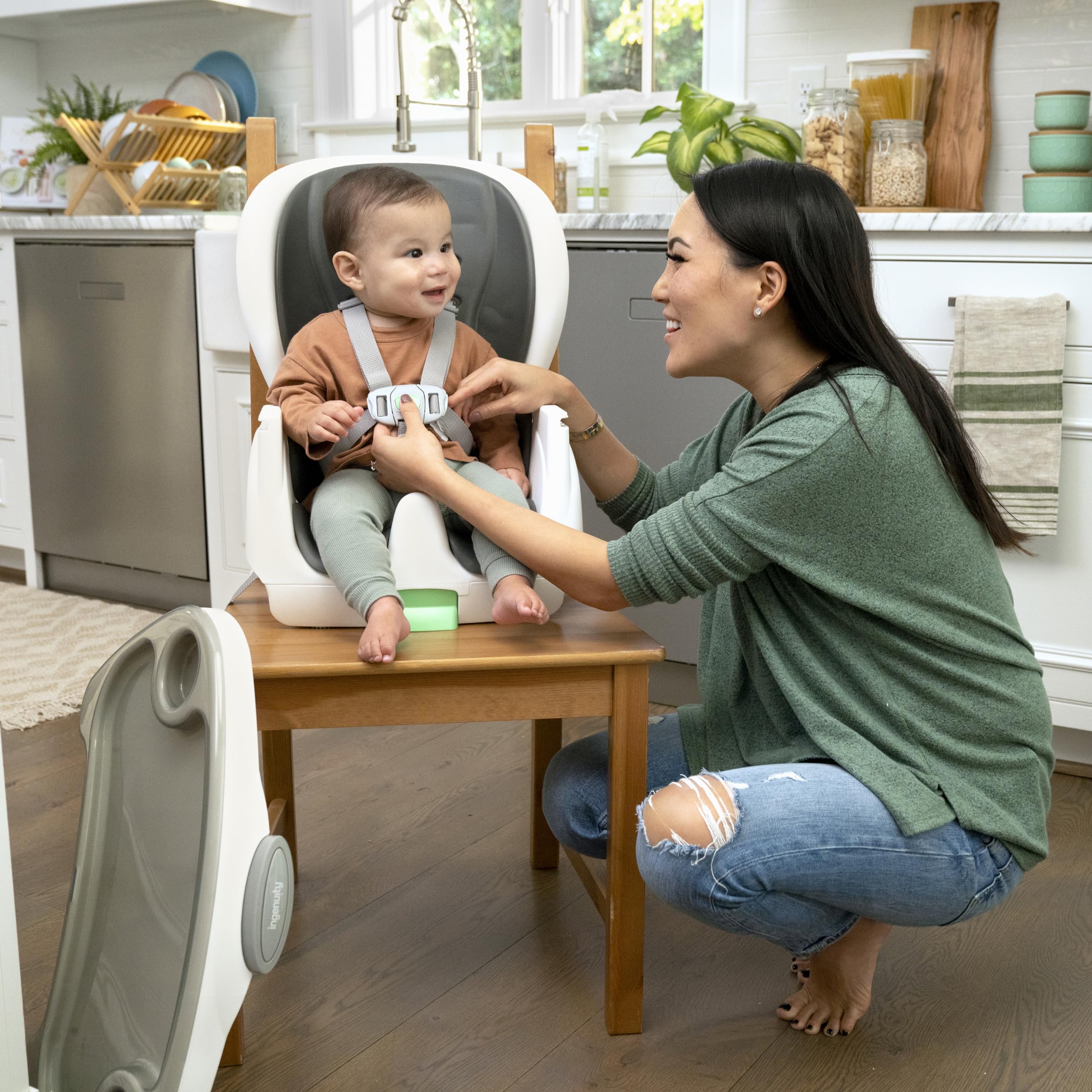 Messy eaters are no match for the Ingenuity Full Course SmartClean 6-in-1 High Chair β Slate. The easy clean design features 6 modes to grow with baby during mealtime