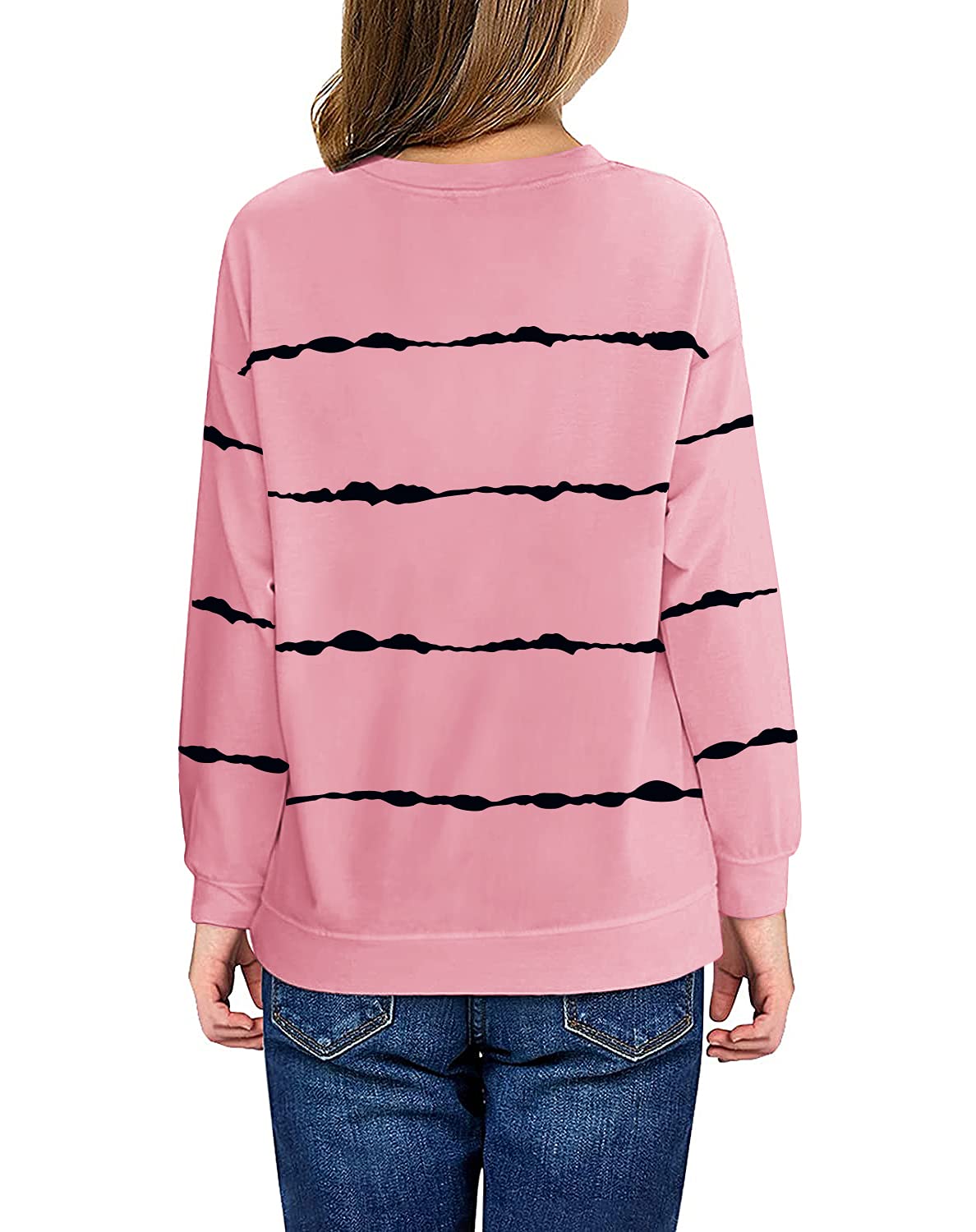 Features: Girls pullover tops designed with long sleeve, stripes printed, tie dye print, dazzling color block, crewneck neckline.Casual loose sweatshirts are perfect for children, kids, teen girls to match any outfits.