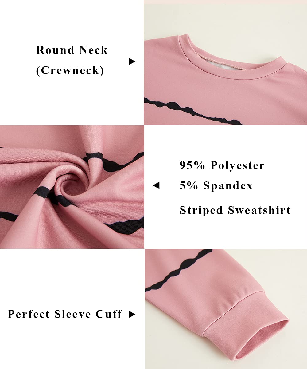 Material: 95% Polyester, 5% Spandex.Girls striped sweatshirts are made with soft, comfortable, lightweight and breathable fabric without pilling.Tie dye printed active sweatshirts for girls are durable, not easy fade and keep warm to wear.