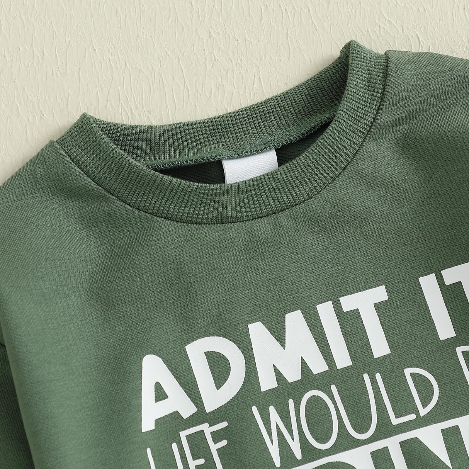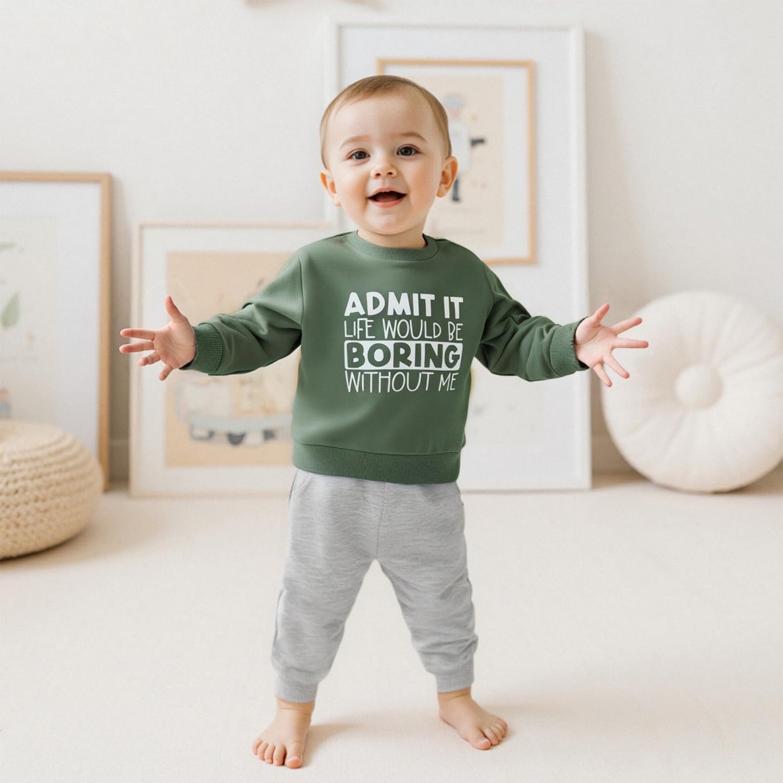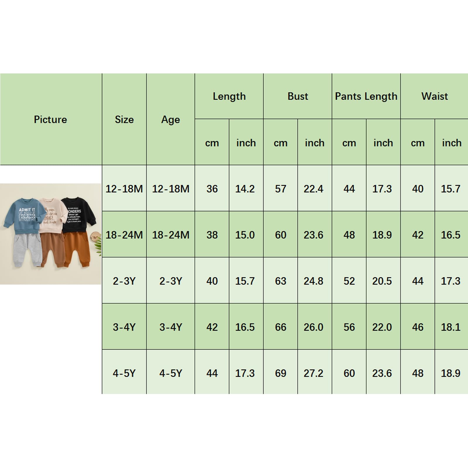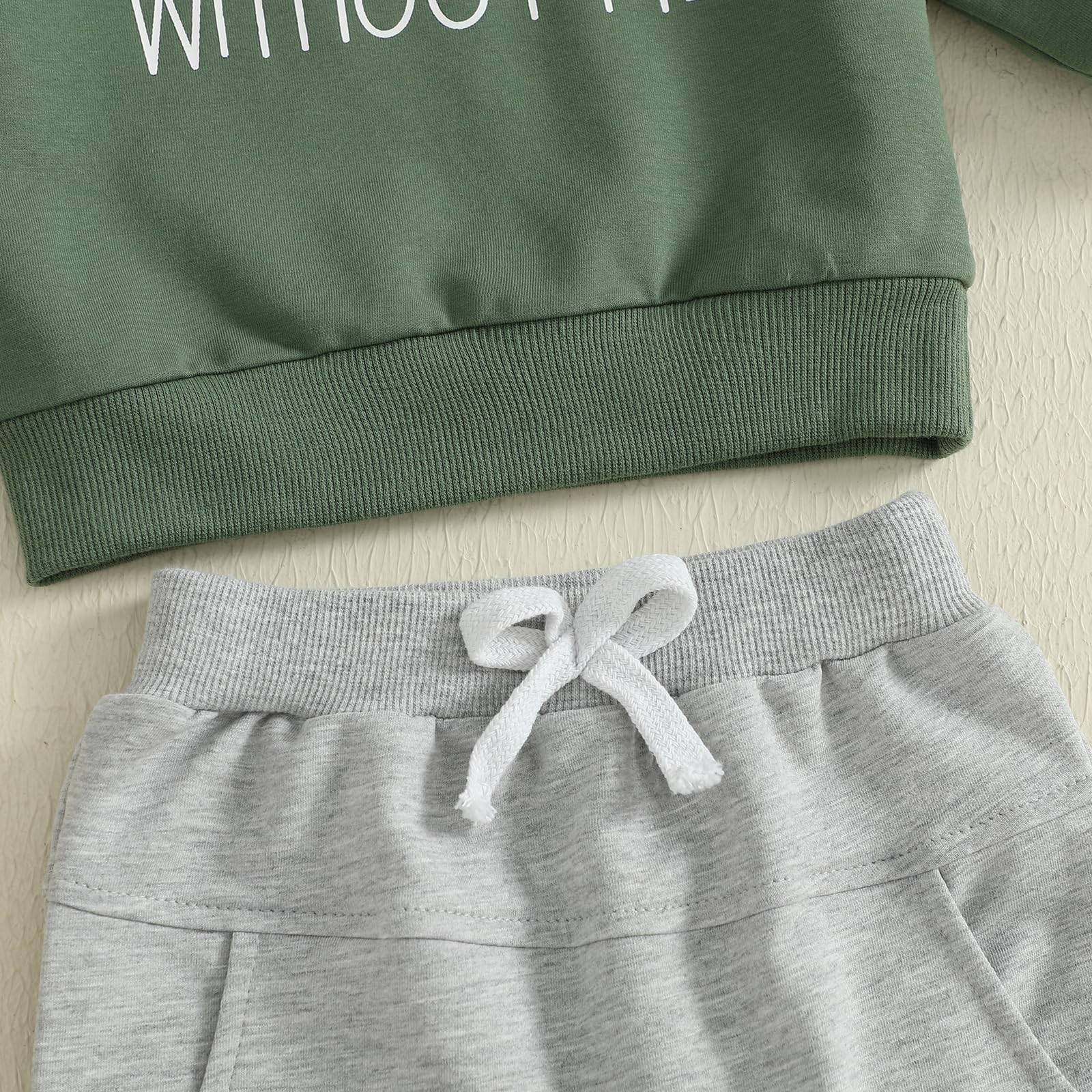 wdehow Toddler Baby Boy 2Pcs Outfits Letters Print Pullover Tops + Drawstring Pants Set Fall Winter Clothes (A-Green 2, 18-24 Months)
