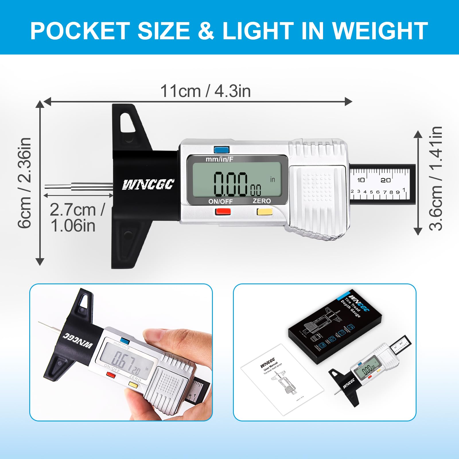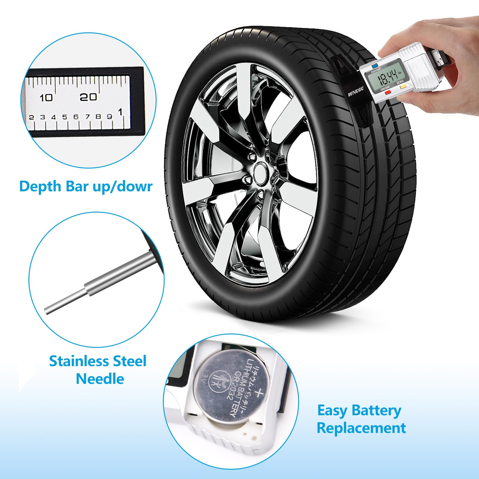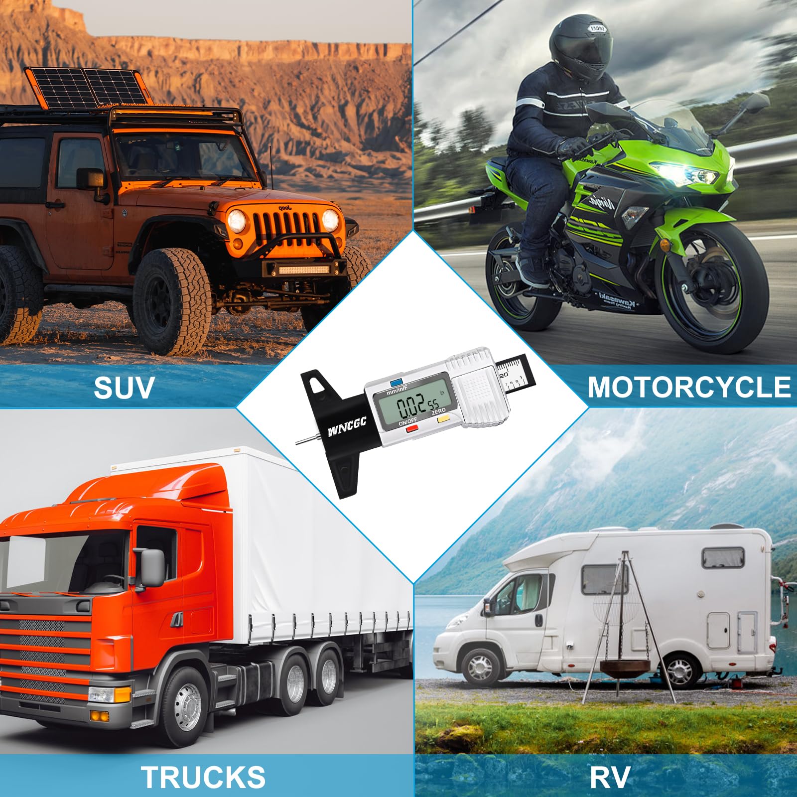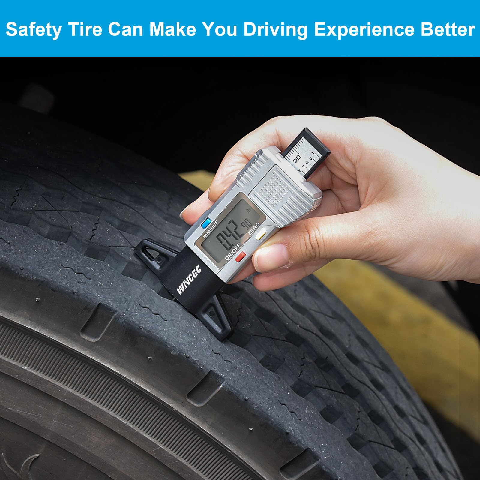 Widely Used--- digital tire tread depth gauge suitable for measuring tread depth and brake pad wear; Minimize tire surface damage and accidents as much as possible.