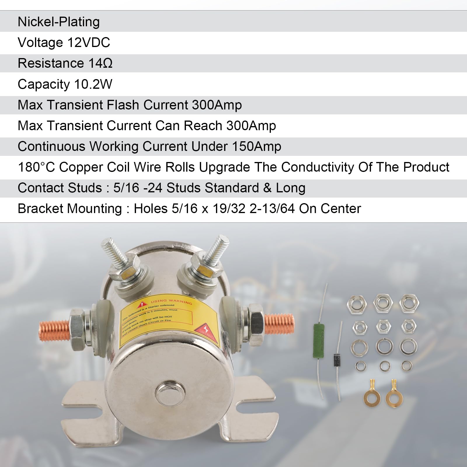 ✦ 【Function 】 4-pole battery isolation solenoid valve: Maximum transient flash current: 300Amp; but Continuous Working Current recommend under 150 Amp, Note: Normally Make 80A as Working Current, Need Break 5 sec on, 50 min off -/ If u need a long working one, pls check another style.