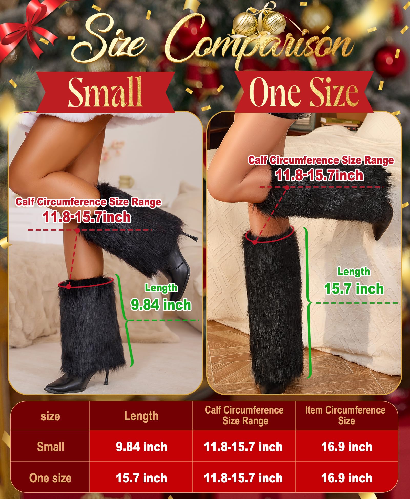 Size& Package: One Size leg warmers. Note: Suitable for calf circumference within 11.8-15.7 inches. PACK: 1 Pair x women's fuzzy leg warmers