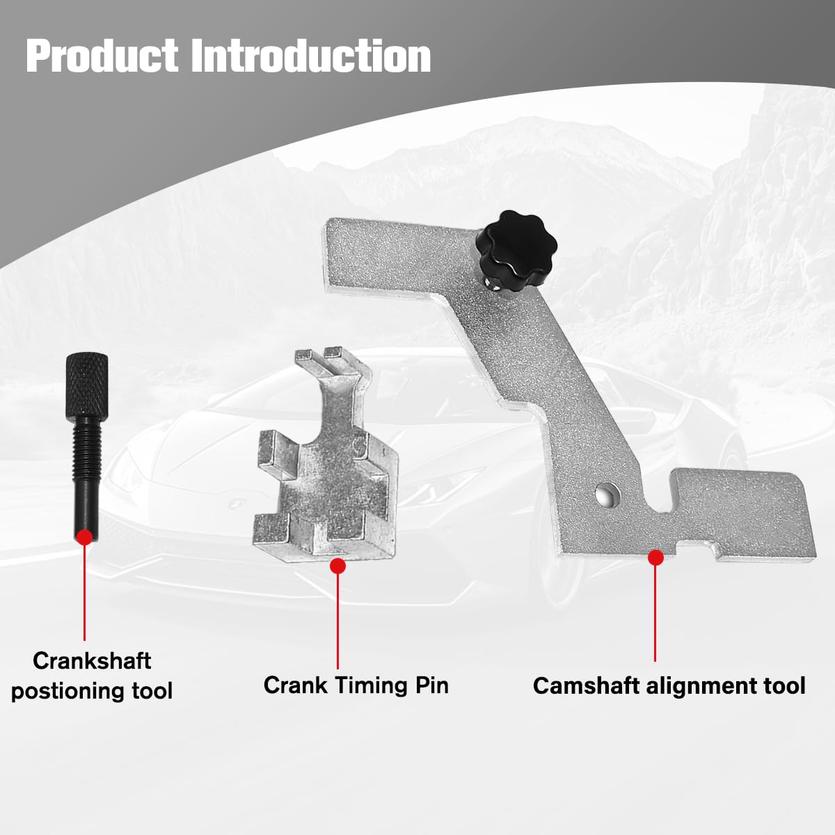 Package Contents: This product comes in a OPP bagged package which dimensions of 5.11 x 7.48 inches contains 3 car pacify timing tools, respectively 1 crankshaft positioning tool, 1 crank timing pin and 1 camshaft alignment tool. With this complete set of timing tools, you can install and adjust the timing system with greater ease, ensuring stable engine operation, enhancing vehicle performance, and extending its service life.