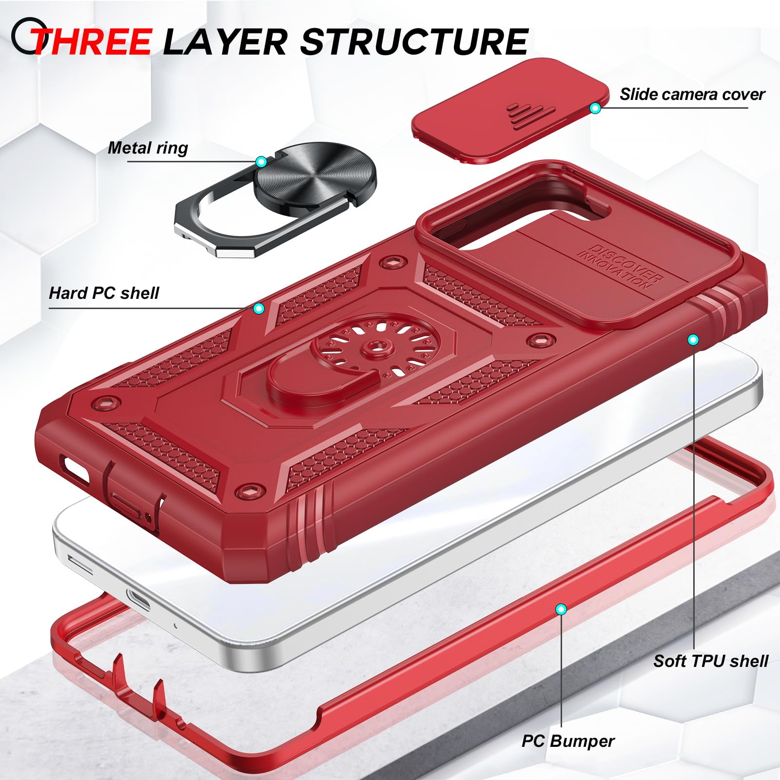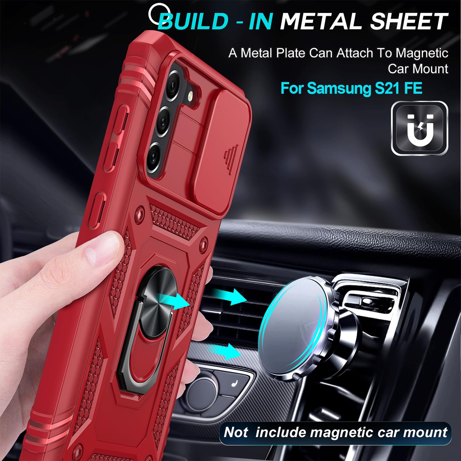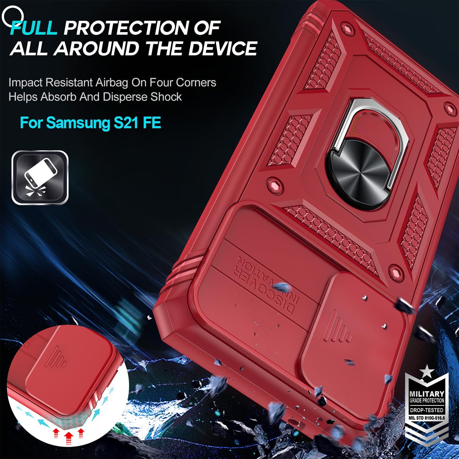 Compatibility: Samsung Galaxy S21 FE Case cares for every detail with precise cutouts allow easy access to all ports, speakers, cameras, buttons, and other functions. Won't compatible with any other phone models. Notice: Due to the metal ring on the back, the case will NOT work with wireless Charging function