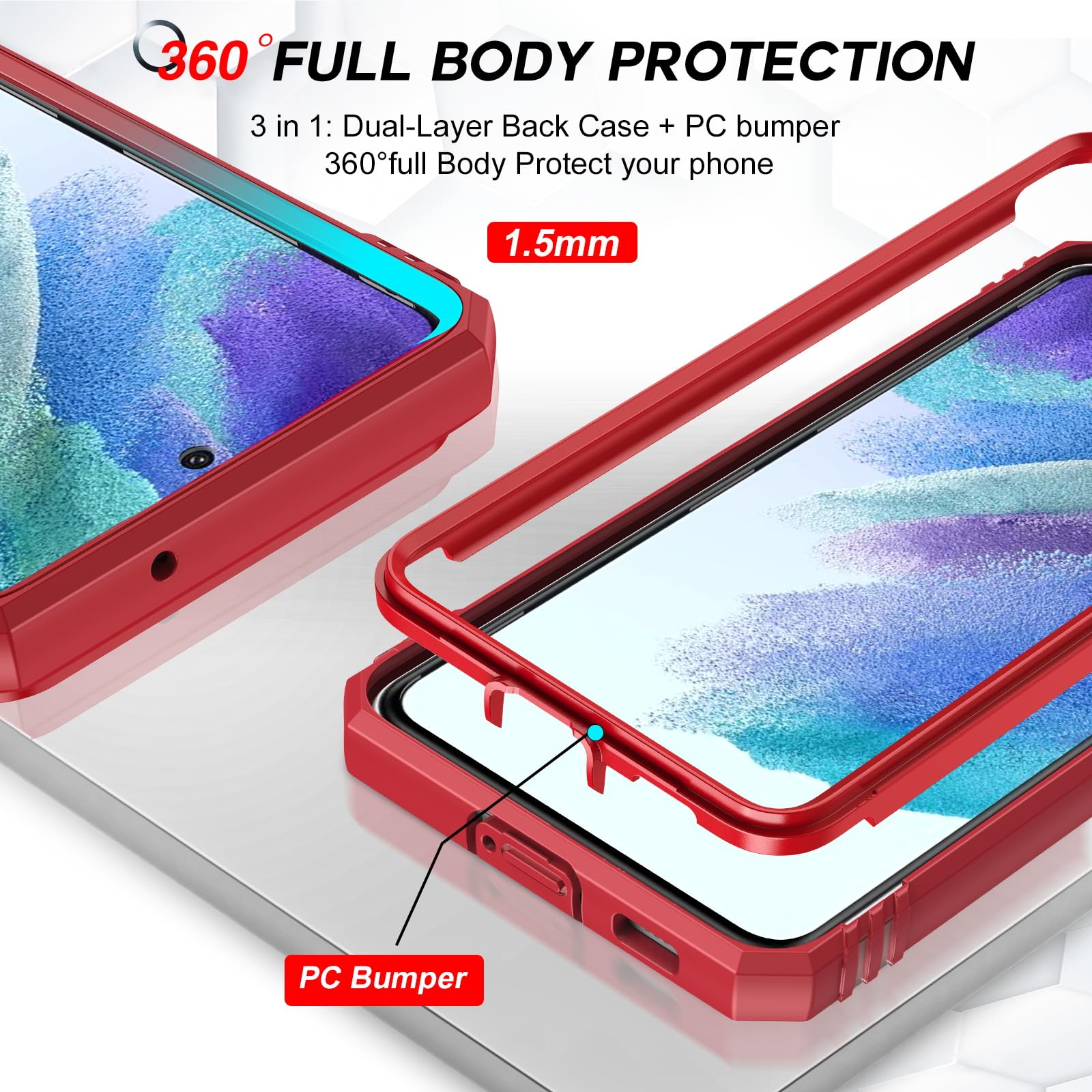 Tempered Glass Screen Protector : The Samsung Galaxy phone case presents [2 Packs] advanced HD clarity 9H hardness ultra resistant tempered glass screen protector. The Samsung Galaxy S21 FE phone case front cover provides 360-degree all-round protection for your phone, effectively prevents screen scratches, supports fingerprint recognition, and improved touch-smooth surface for better handheld experience
