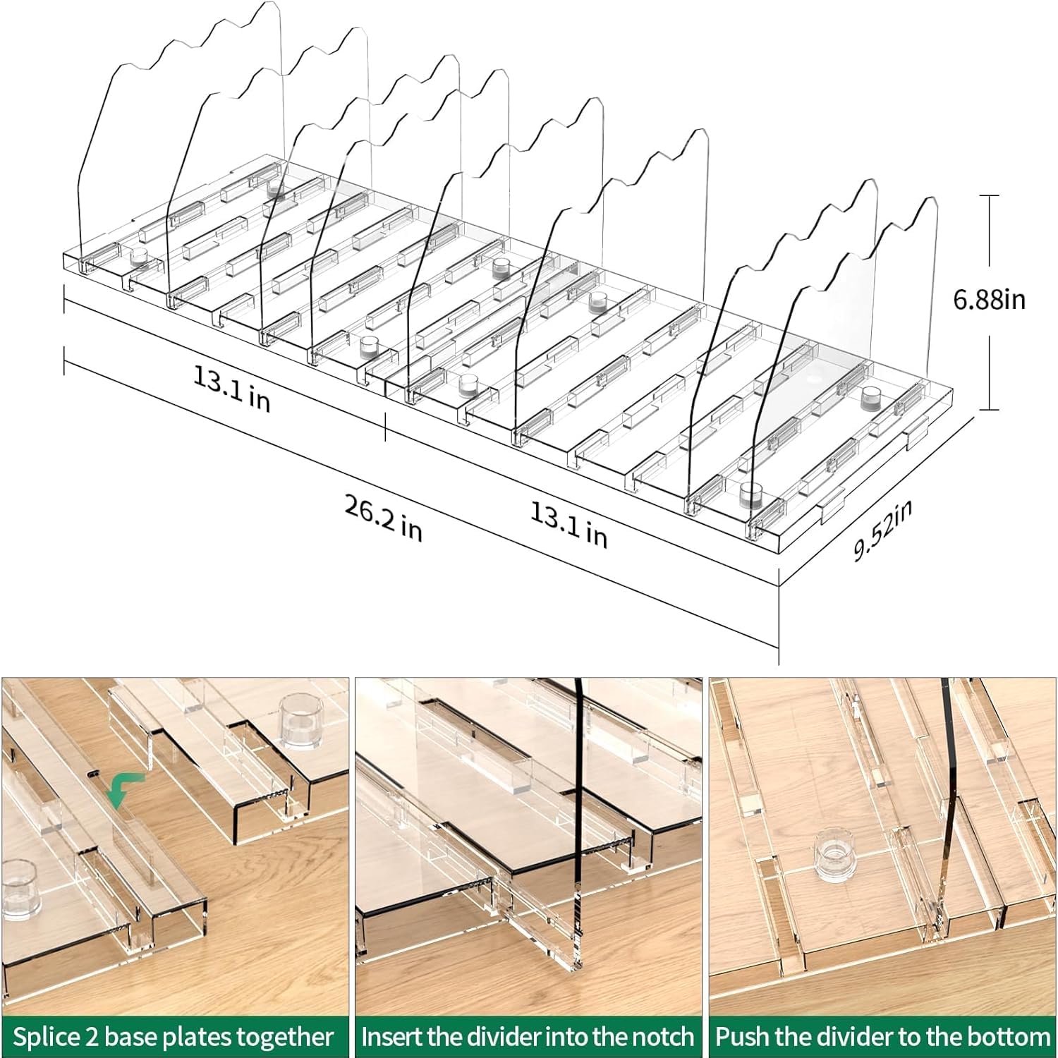 [Sturdy & Durable]: Our closet purse organizer is made of high quality thick plastic for support and durability to prevent your bag from being squeezed or deformed. The dividers are designed with wavy rounded edges so they won't scratch your closet and clothes when in use.