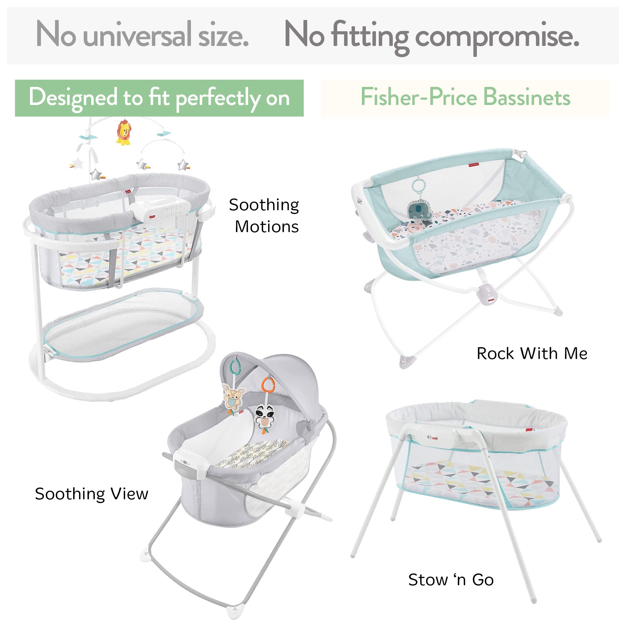 ✔ PERFECT CUSTOM FIT – EASY ON, WON’T SLIP OFF: Every Joey + Joan bassient fitted sheet fits SPECIFIC MODELS, so they easily slip onto your baby mattress, with ZERO WORRY THEY’LL ACCIDENTALLY SLIP OFF over baby’s head. These bassinet covers are compatible with Fisher-Price Soothing Motions, Stow and Go and Rock with Me bassinets