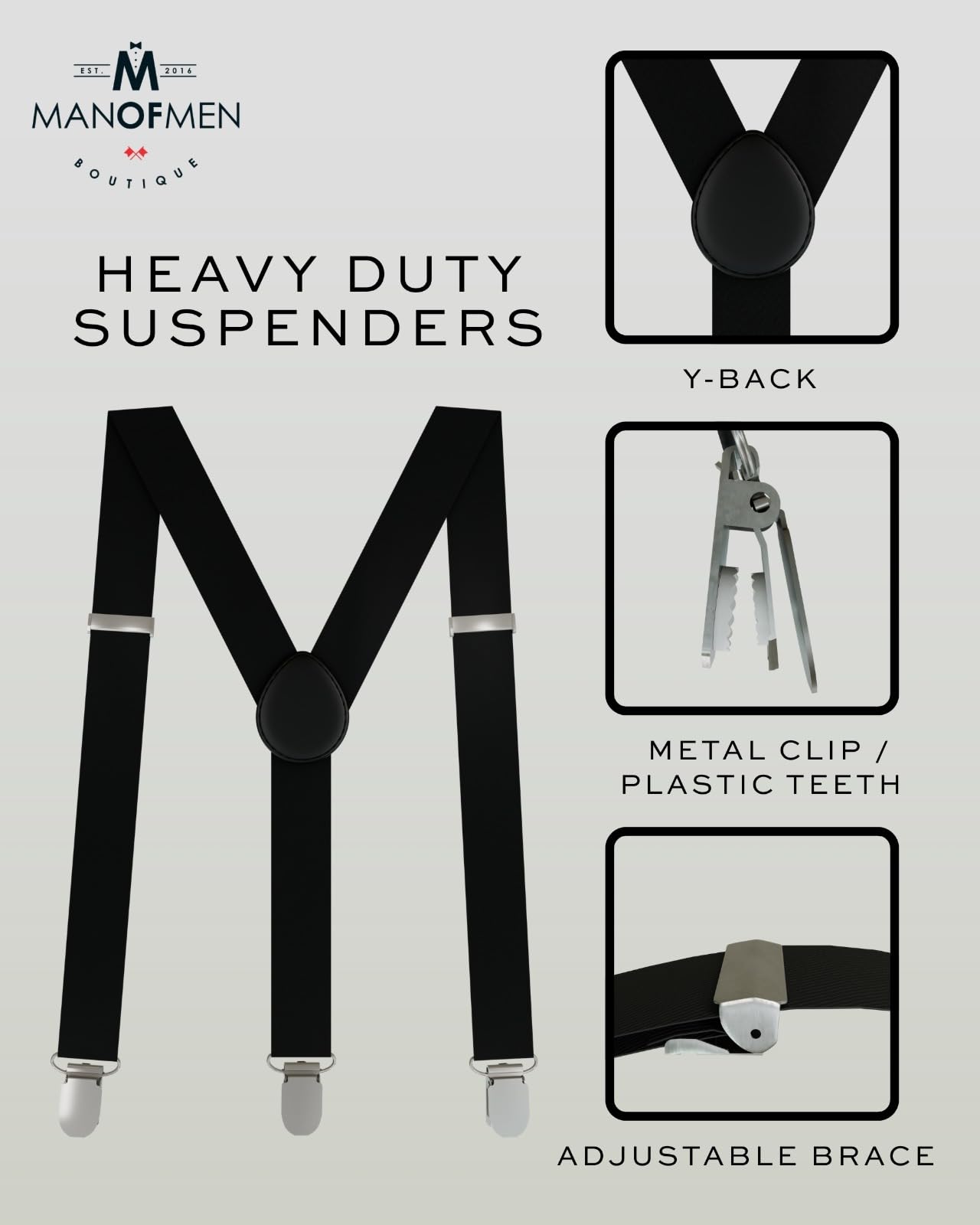 Heavy-Duty Strength & Secure Grip: Designed for durability and performance, these mens suspenders feature 1" wide premium elastic straps and extra-strong metal clips that grip firmly without slipping. Ideal for demanding tasks like construction, outdoor work, or all-day wear, they ensure your pants stay in place, even with tool belts or heavy pockets